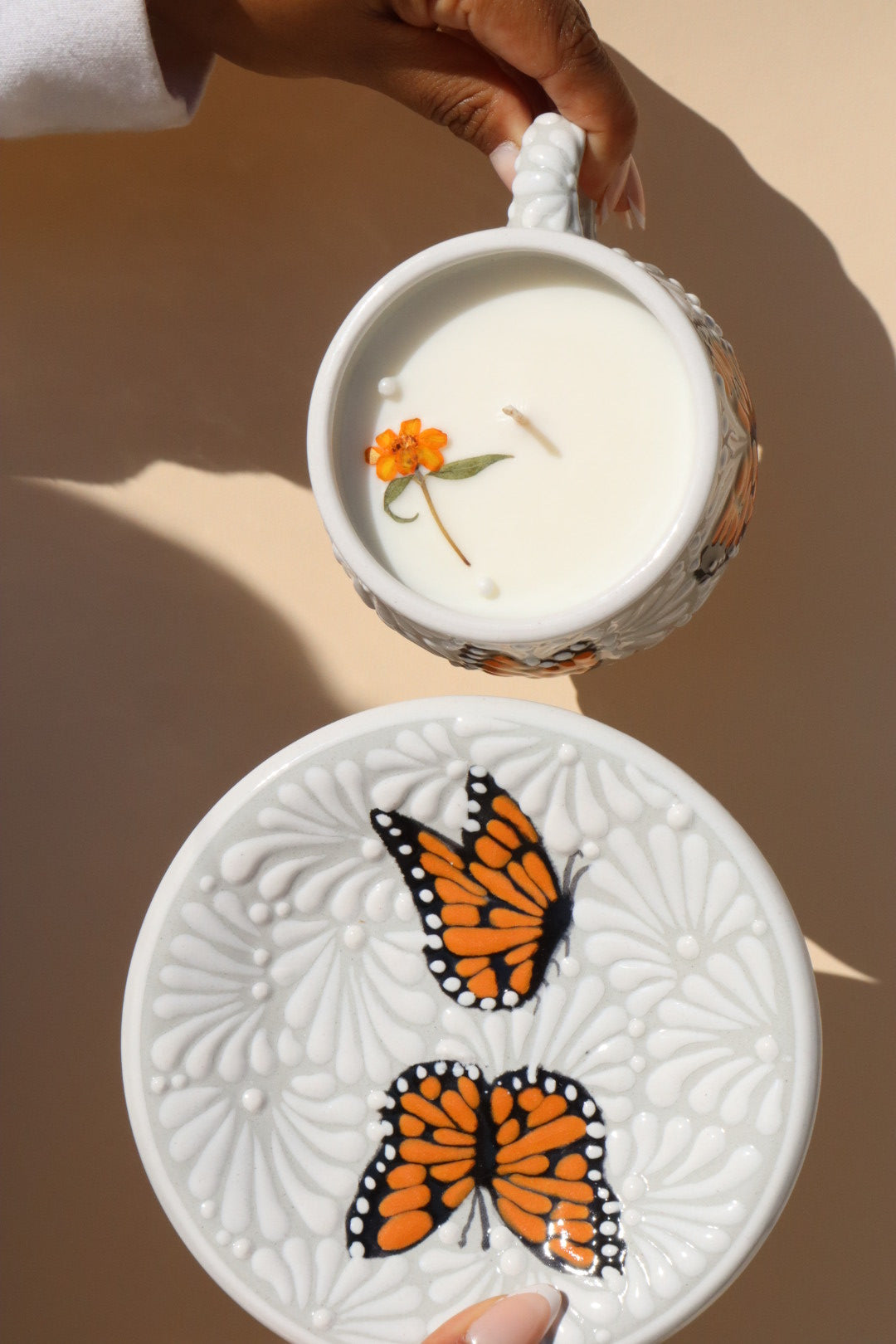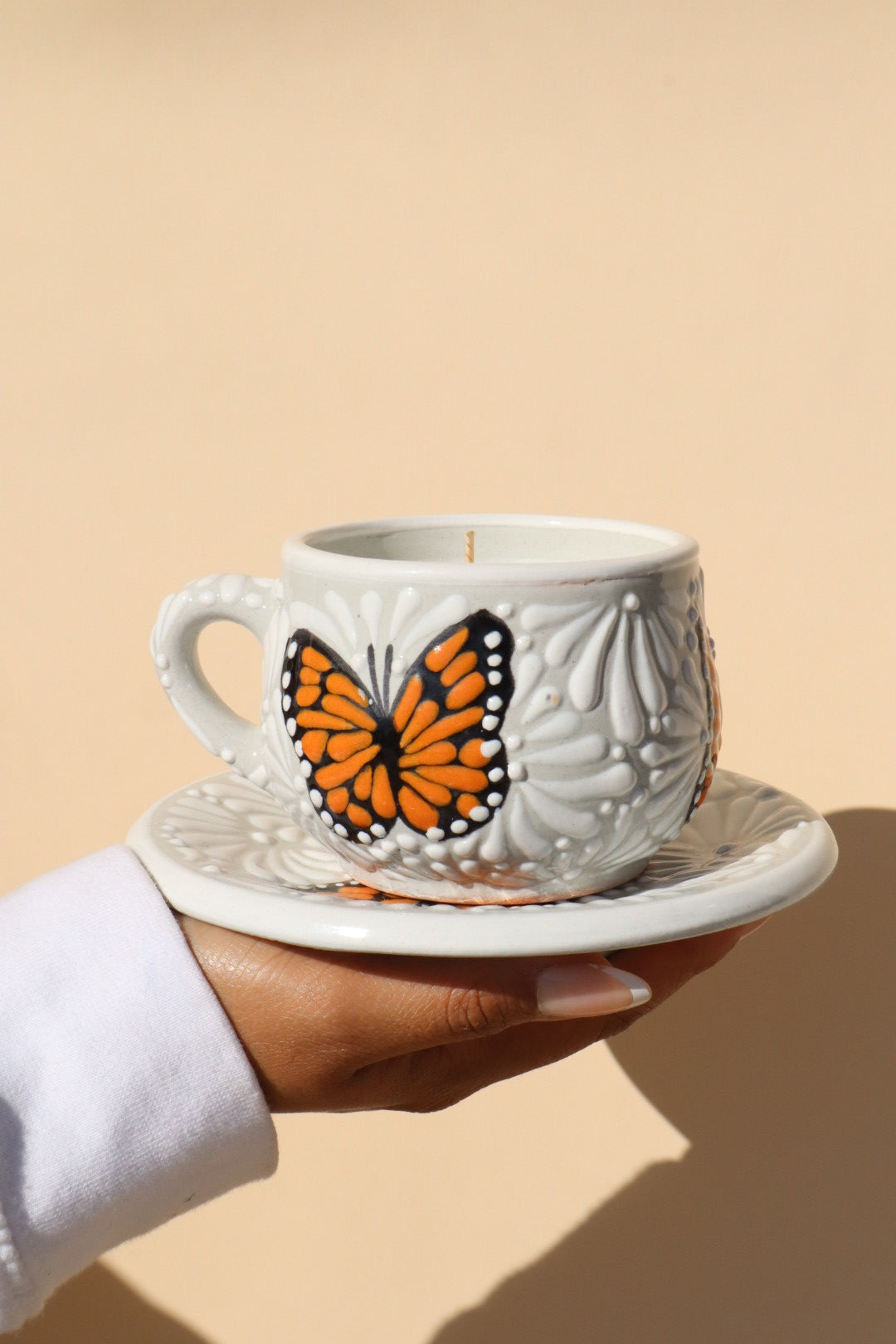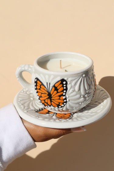 Indulge your senses with this beautiful two-piece candle set, combining the legendary artistry of Talavera from Puebla with a warm, ambient glow. Once the candle is finished, the heirloom-quality teacup and saucer are ready to be repurposed for daily use.