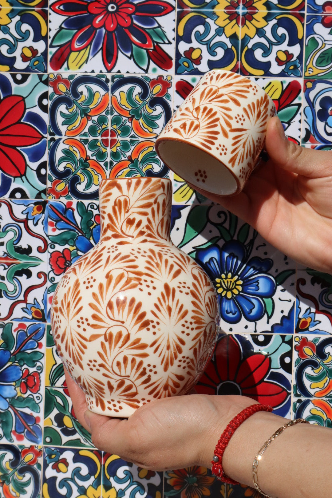This exquisite Little Carafe and Cup Set marries timeless elegance with traditional Mexican artistry.