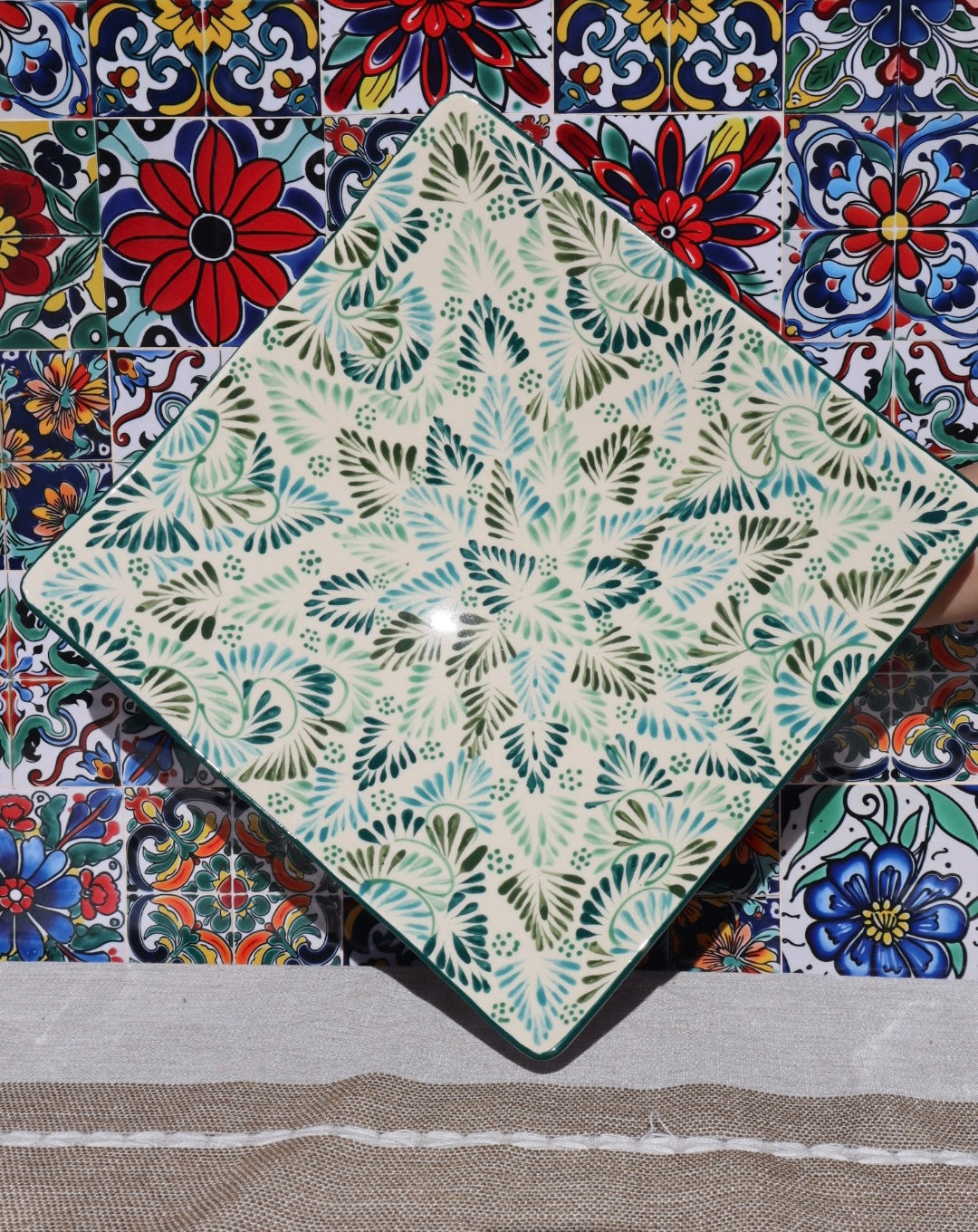 Elevate your entertaining with this gorgeous square Serving Tray/Frutero. Hand-painted by skilled artisans in Guanajuato, Mexico, this piece brings the rich ceramic heritage of the region straight to your table.