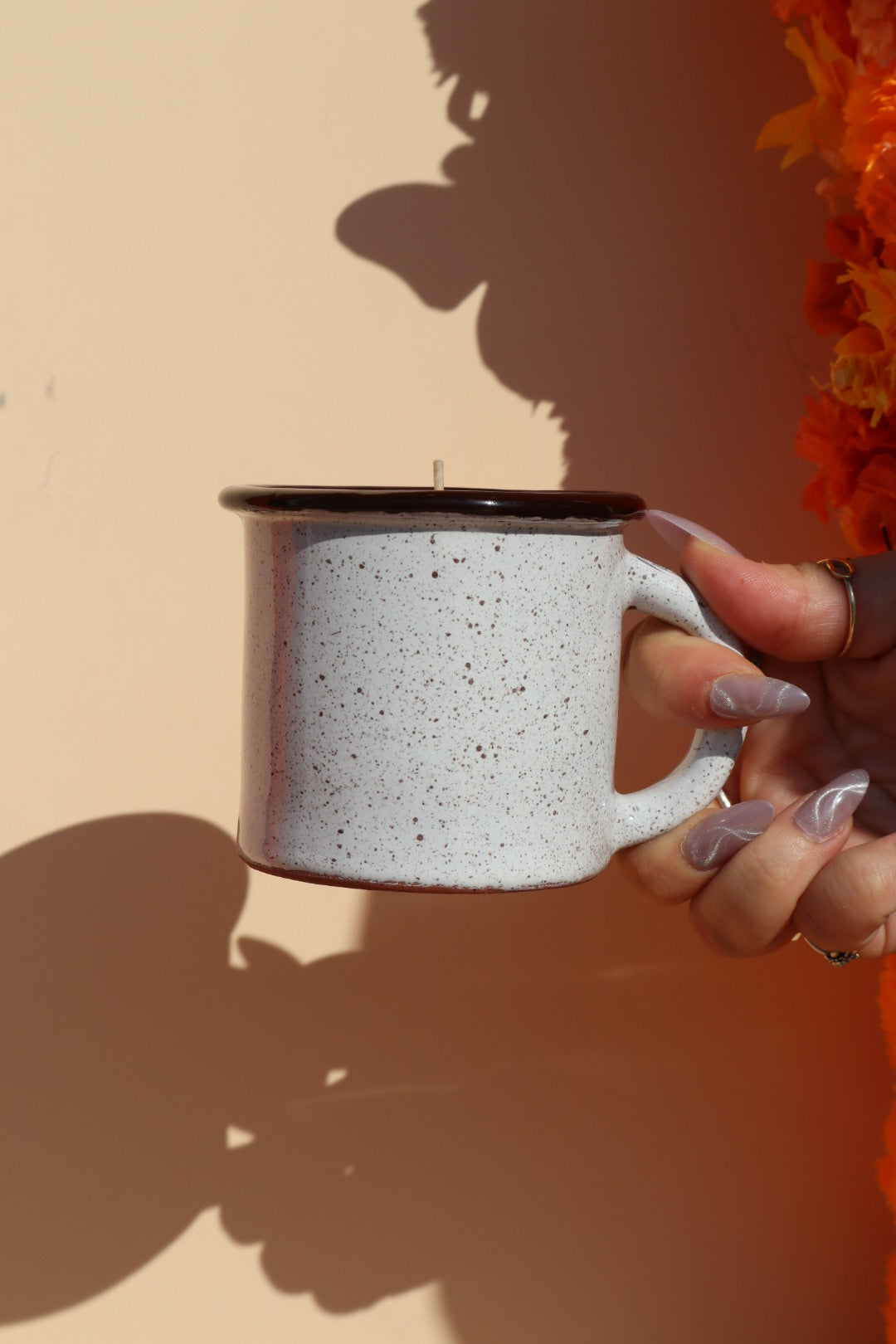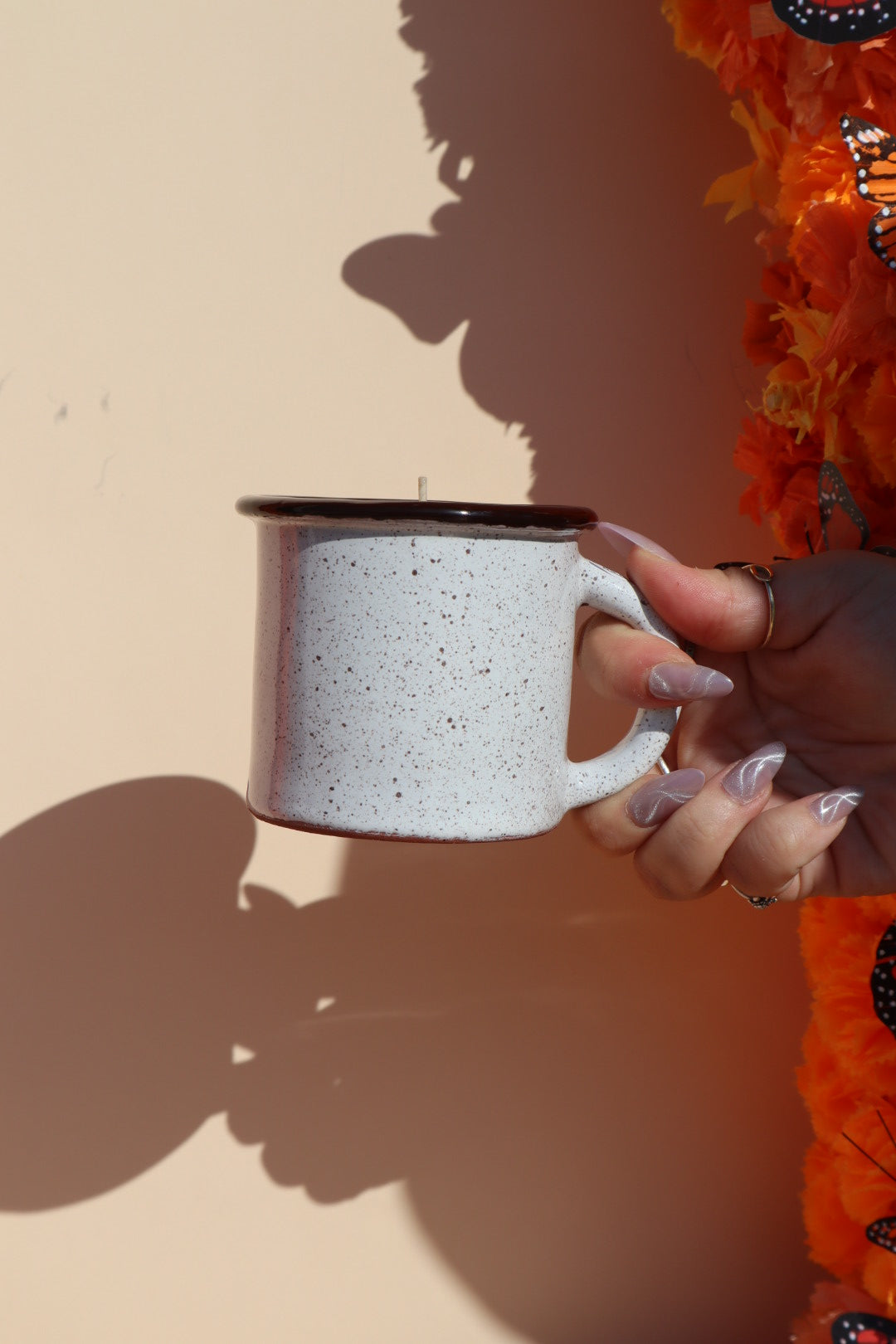 Bring the warmth and nostalgic charm of a Mexican home into your space with the La Tacita de Casa candle. This beautiful piece is an homage to the classic "peltre" (enamelware) mugs and cups, found in kitchens across Mexico, but reimagined in durable, speckled ceramic.