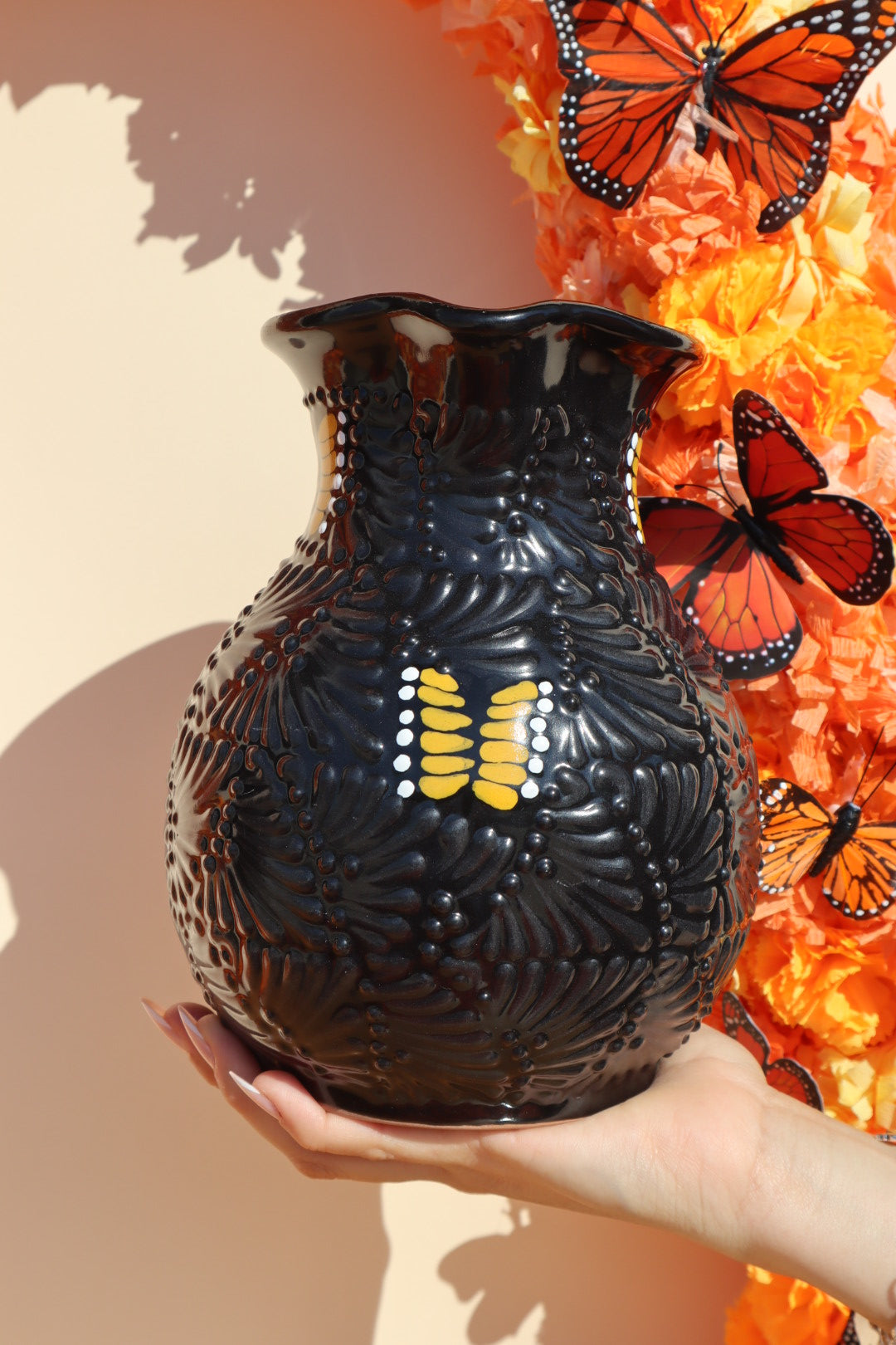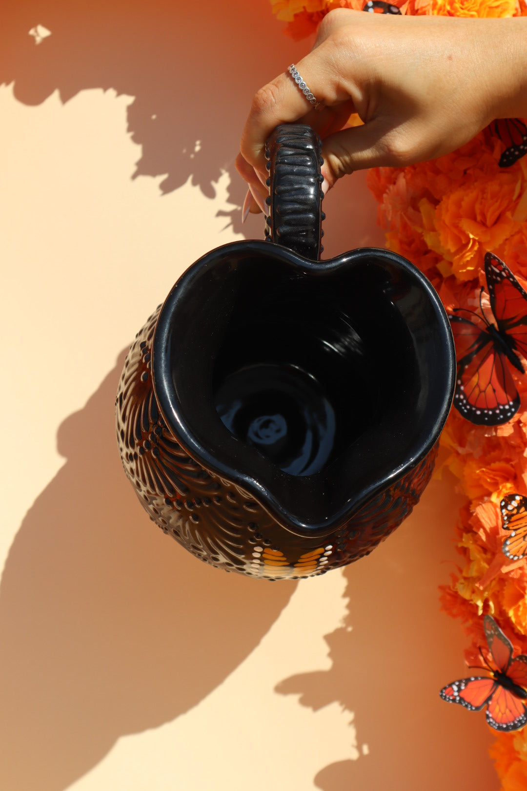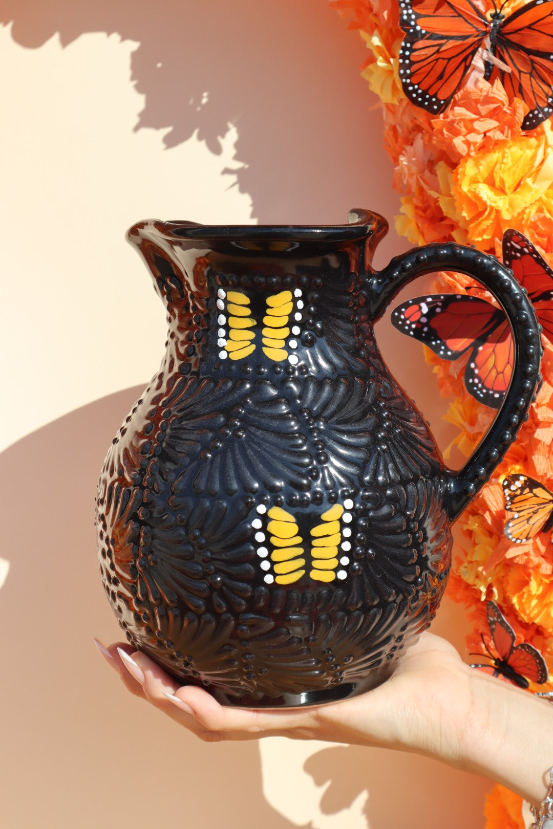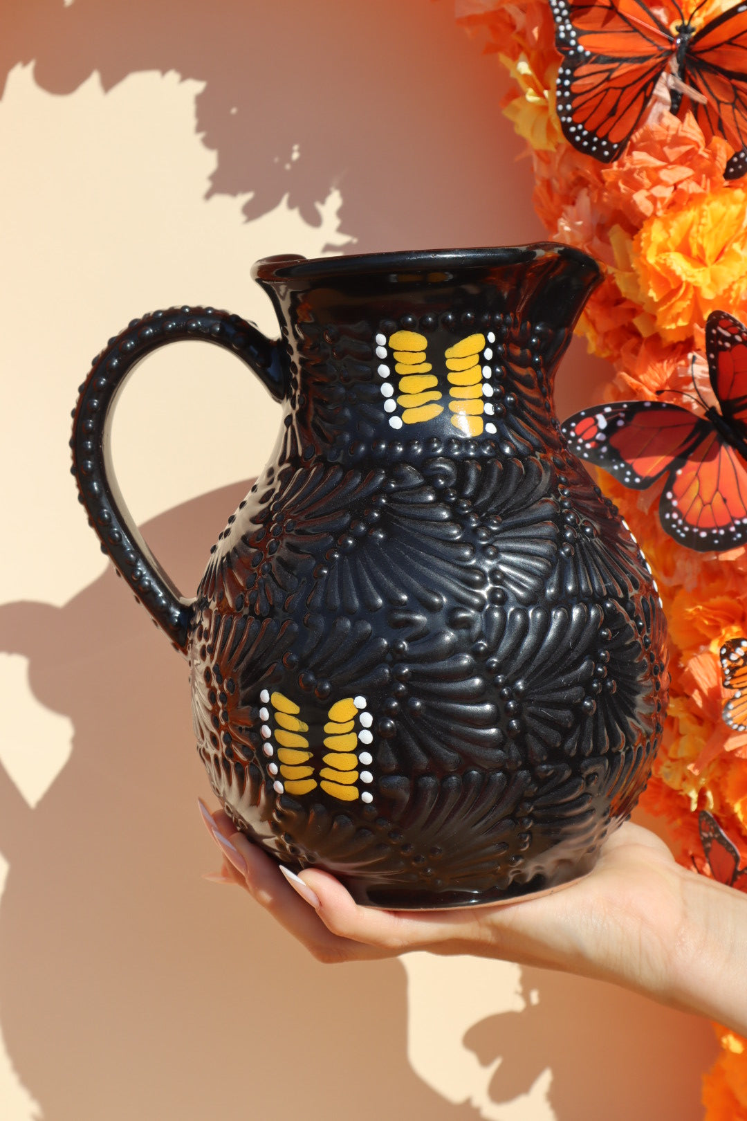 Puebla Talavera Pitcher (Black & Monarch Butterflies)