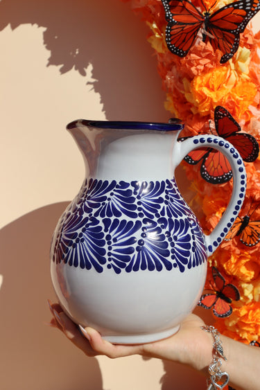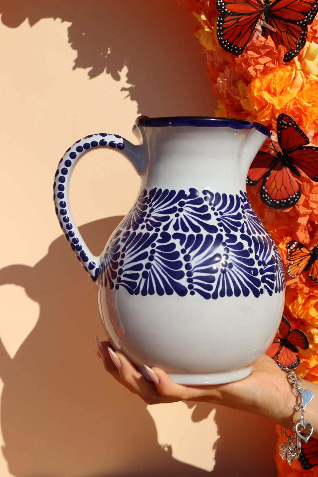 Bring authentic Mexican elegance to your table with the Puebla Talavera Pitcher. Handcrafted by master artisans in Puebla, Mexico, this traditional ceramic pitcher is ideal for serving water, juice, aguas frescas, or for use as a striking decorative vase. It's a true piece of Talavera ceramic art for your home.