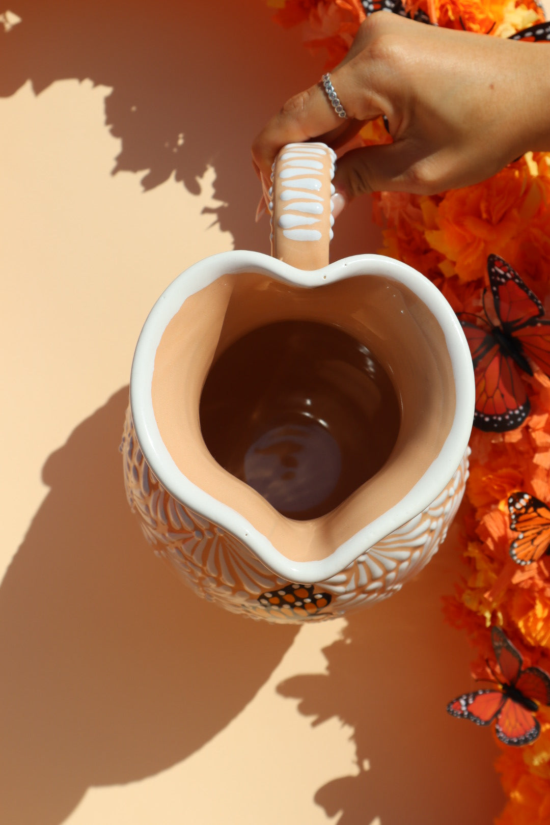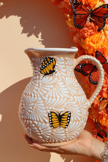 This beautiful piece is made from Talavera ceramic and features a stunning, hand-painted plumeado paint strokes that covers the generous belly of the pitcher. While the core pattern is consistent, please remember that this is a hand-painted item. Slight variations in brushstrokes (plumeado), color saturation, and pattern density are natural features that guarantee your pitcher is a unique, one-of-a-kind piece of Mexican folk art.