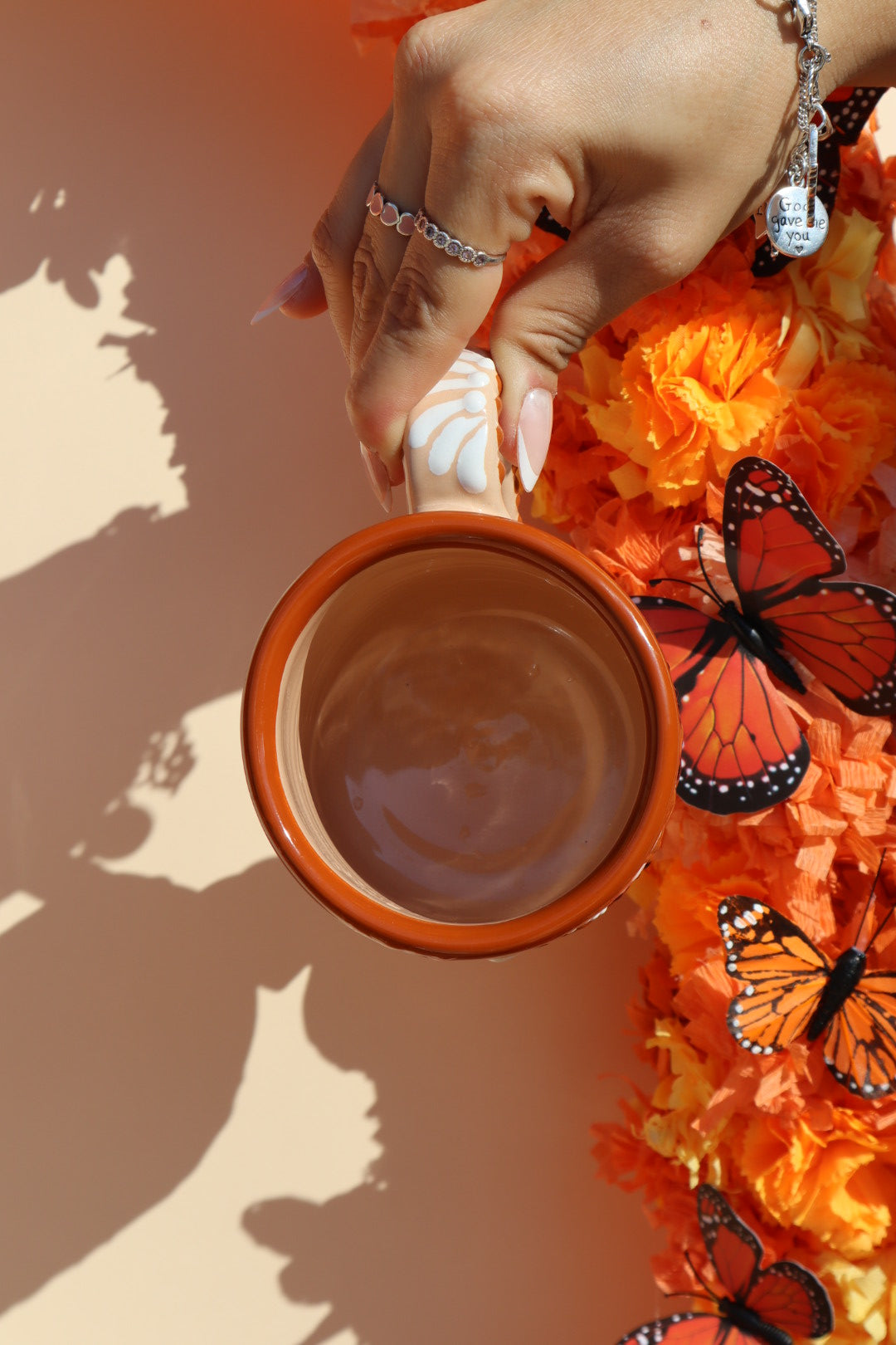 Elevate your daily coffee or tea ritual with the Puebla Talavera Taza Set. This beautiful set, handcrafted by artisans in Puebla, Mexico, brings the iconic artistry of Talavera to your table. The exquisite Monarch butterfly design serves as a lovely reminder of migration and transformation, making every sip special. Please note: This item is not a candle.