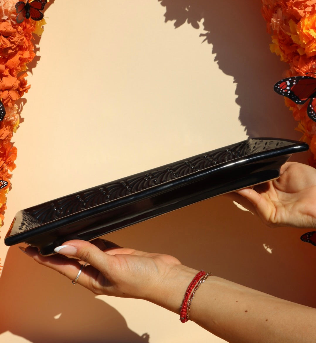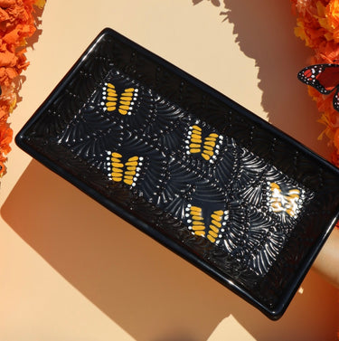 Puebla Talavera Tray (Black & Monarch Butterfly)