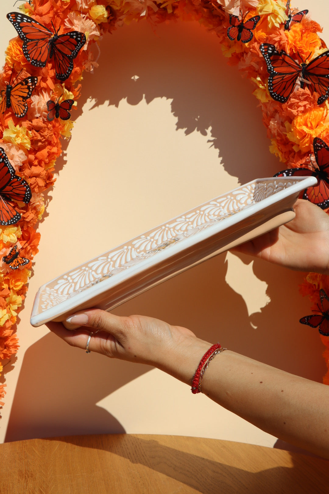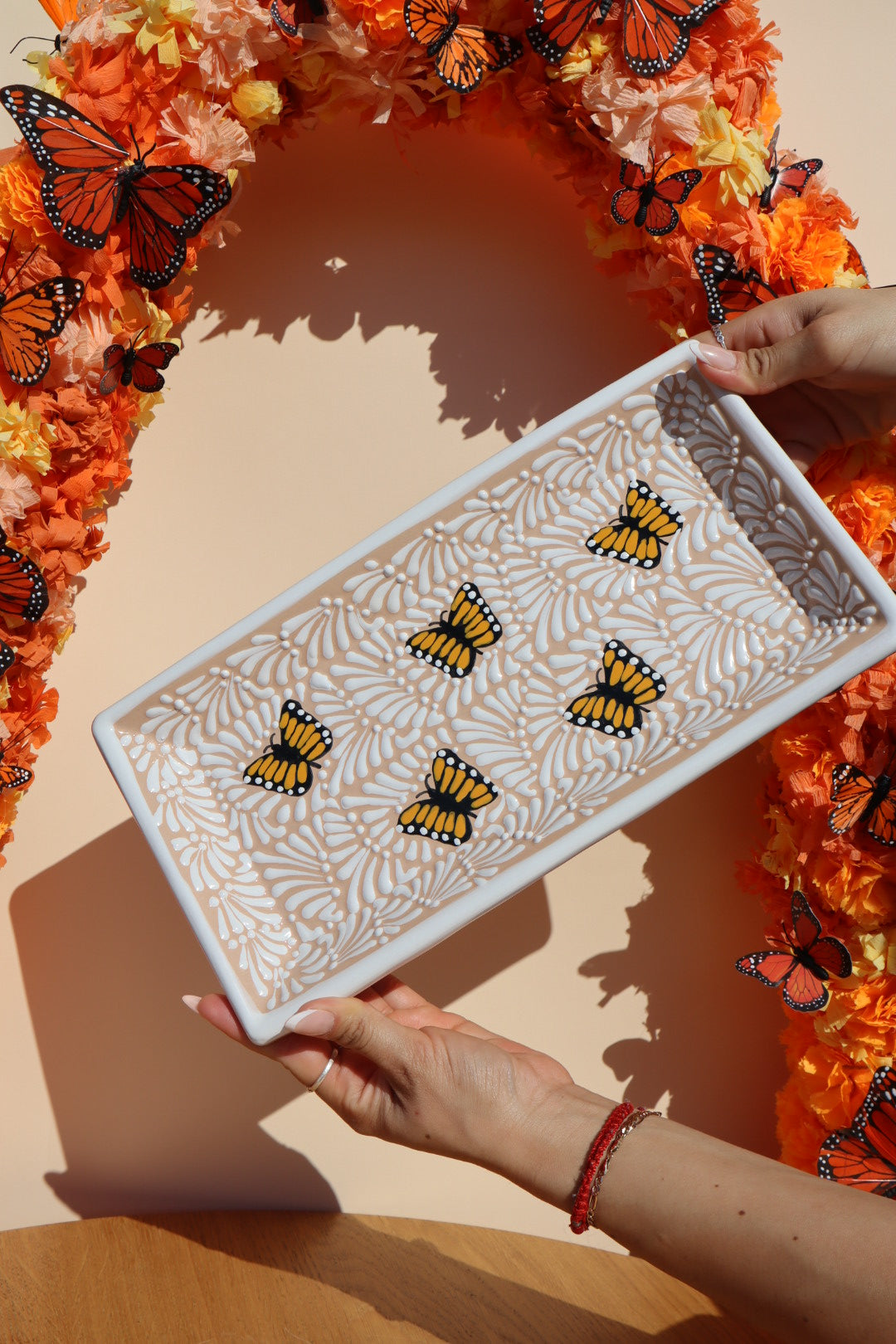 Puebla Talavera Tray (Cream & Monarch Butterfly)