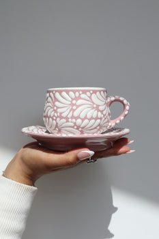 Puebla Talavera Taza Set (Cream & Monarch Butterflies)