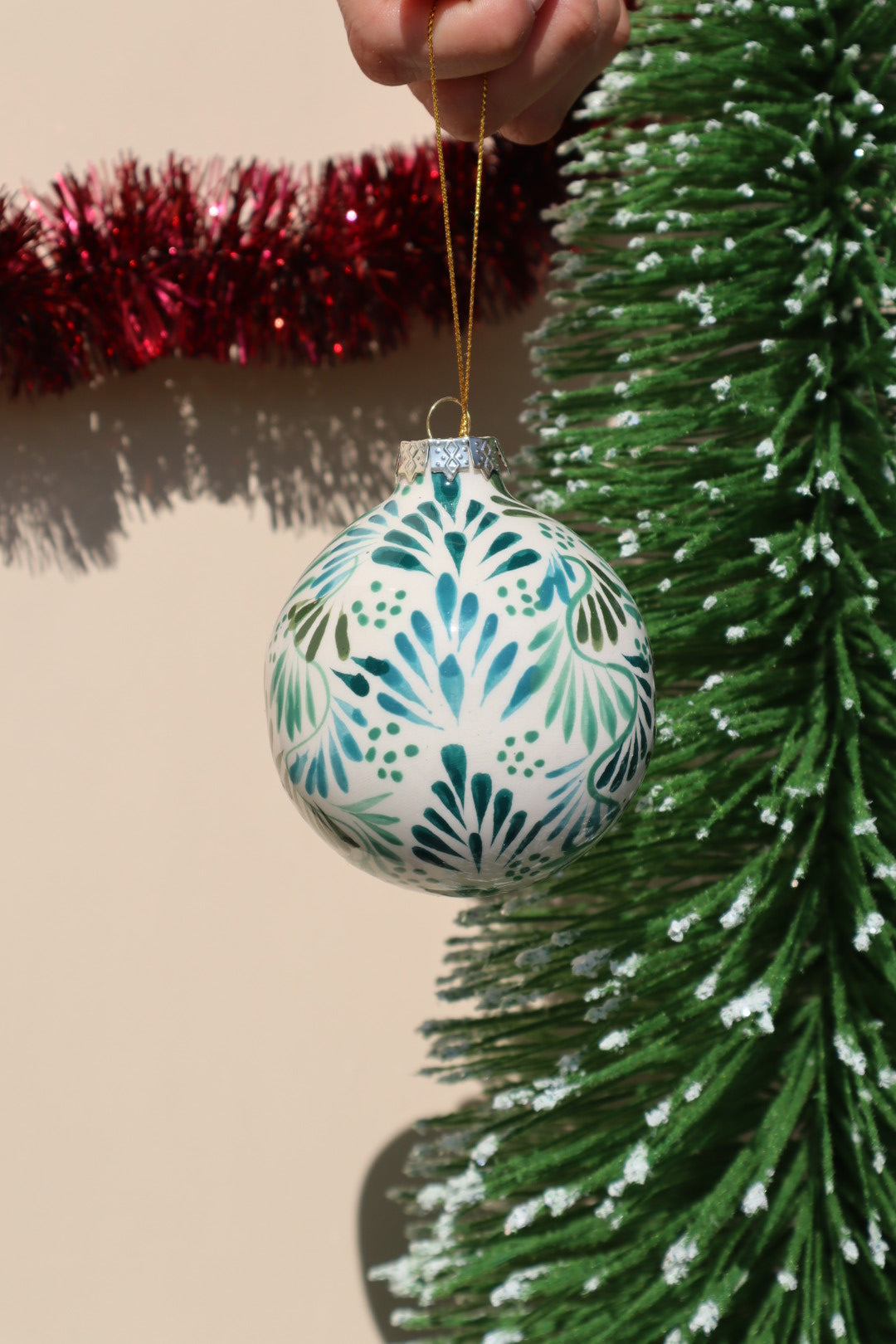 This piece is a testament to Guanajuato’s renowned pottery tradition. Each ornament is a unique work of art, with slight, beautiful variations in the painting, ensuring your piece is truly special and adds a calming yet luxurious elegance to your tree.