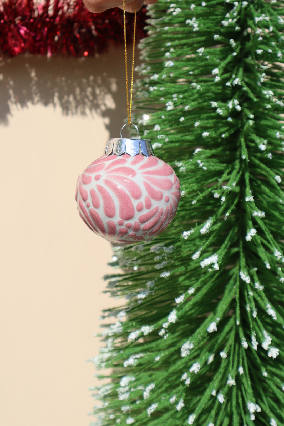💖 Puebla Talavera-Style Ornament (Hand-Painted Pink & White)