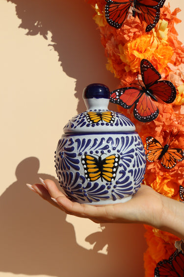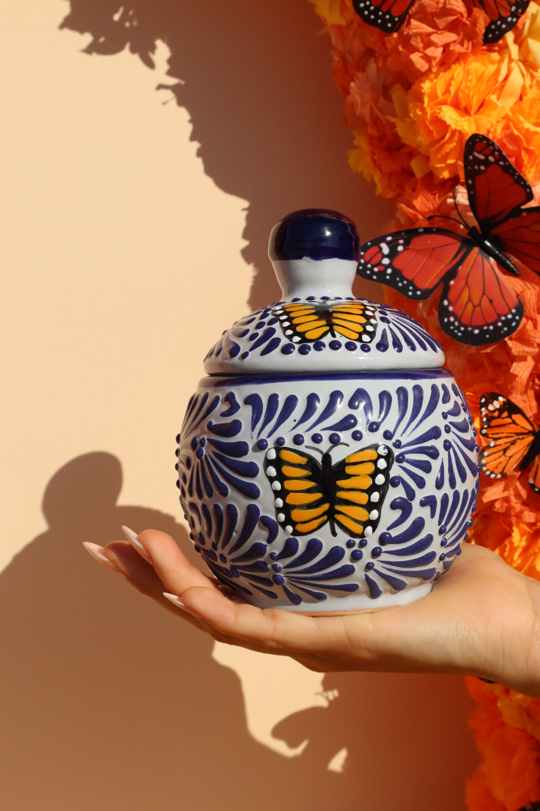 • Repurposing: Once your candle has burned down, gently clean out any residual wax. Your beautiful Talavera jar can then be repurposed as a decorative storage container, a unique sugar bowl, or a charming piece of home decor.