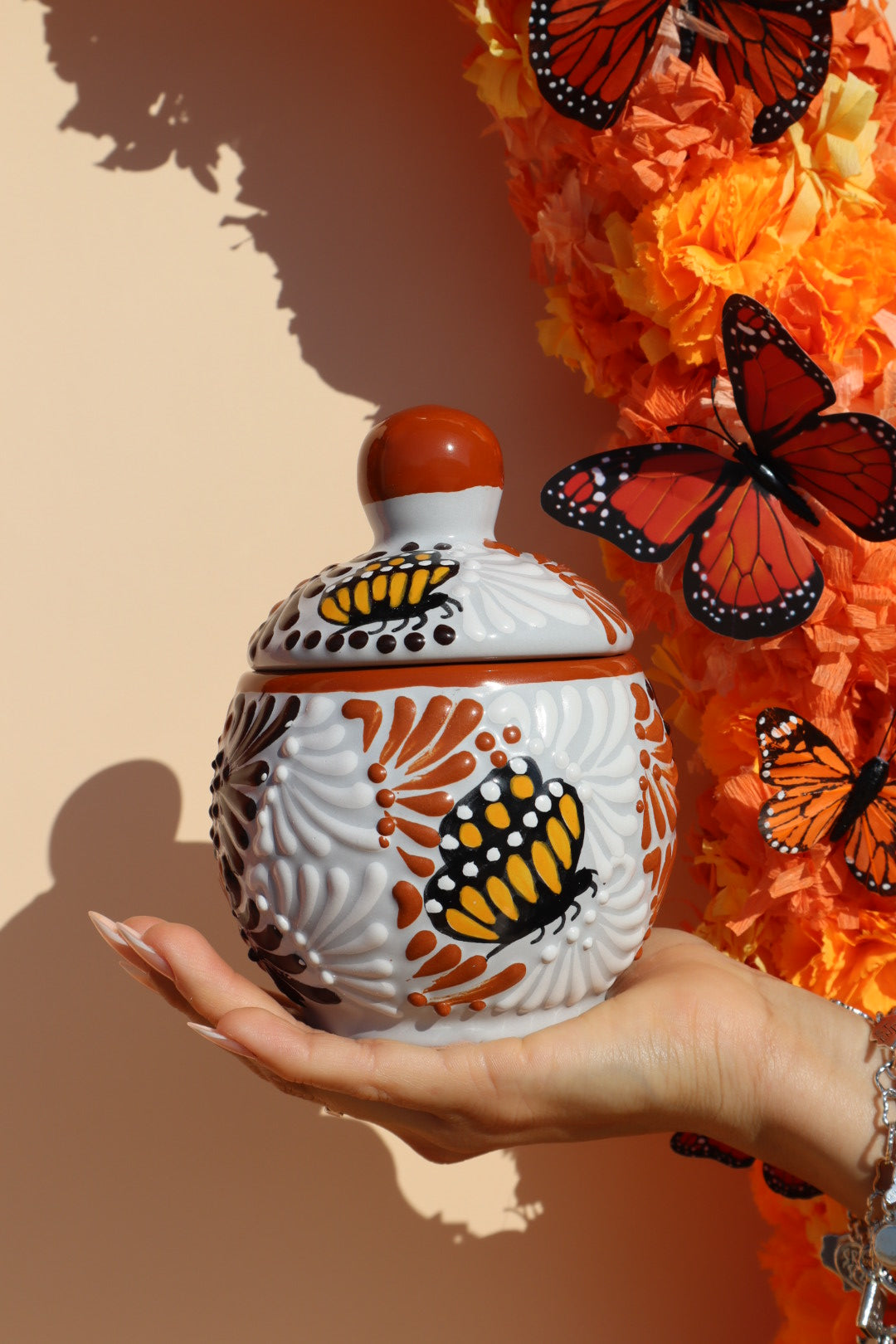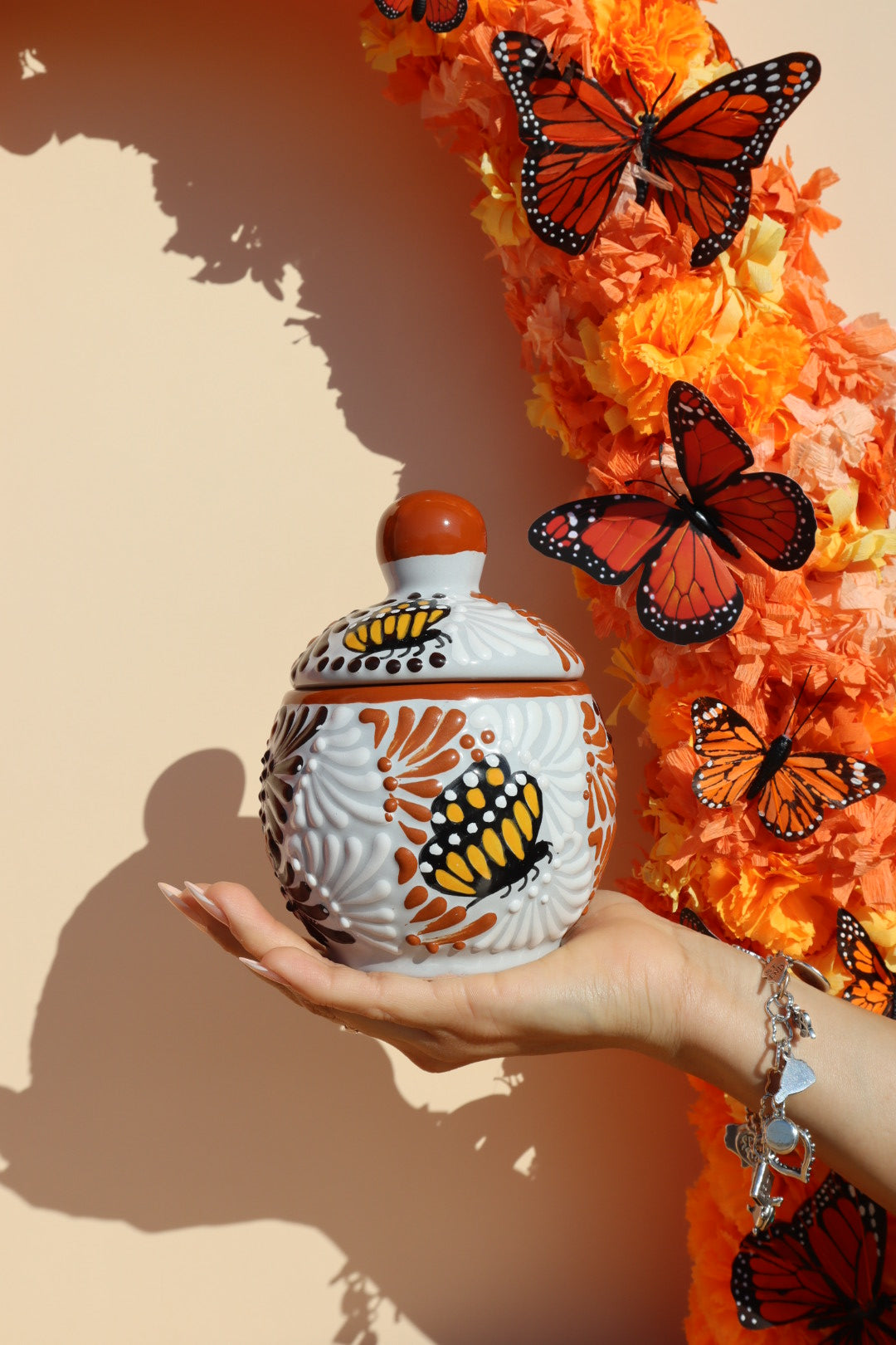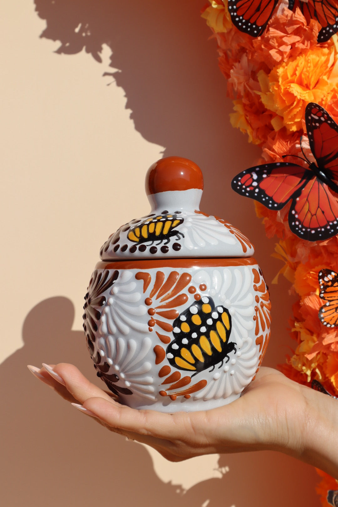Repurposing: Once your candle has burned down, gently clean out any residual wax. Your beautiful Talavera jar can then be repurposed as a decorative storage container, a unique sugar bowl, or a charming piece of home decor.