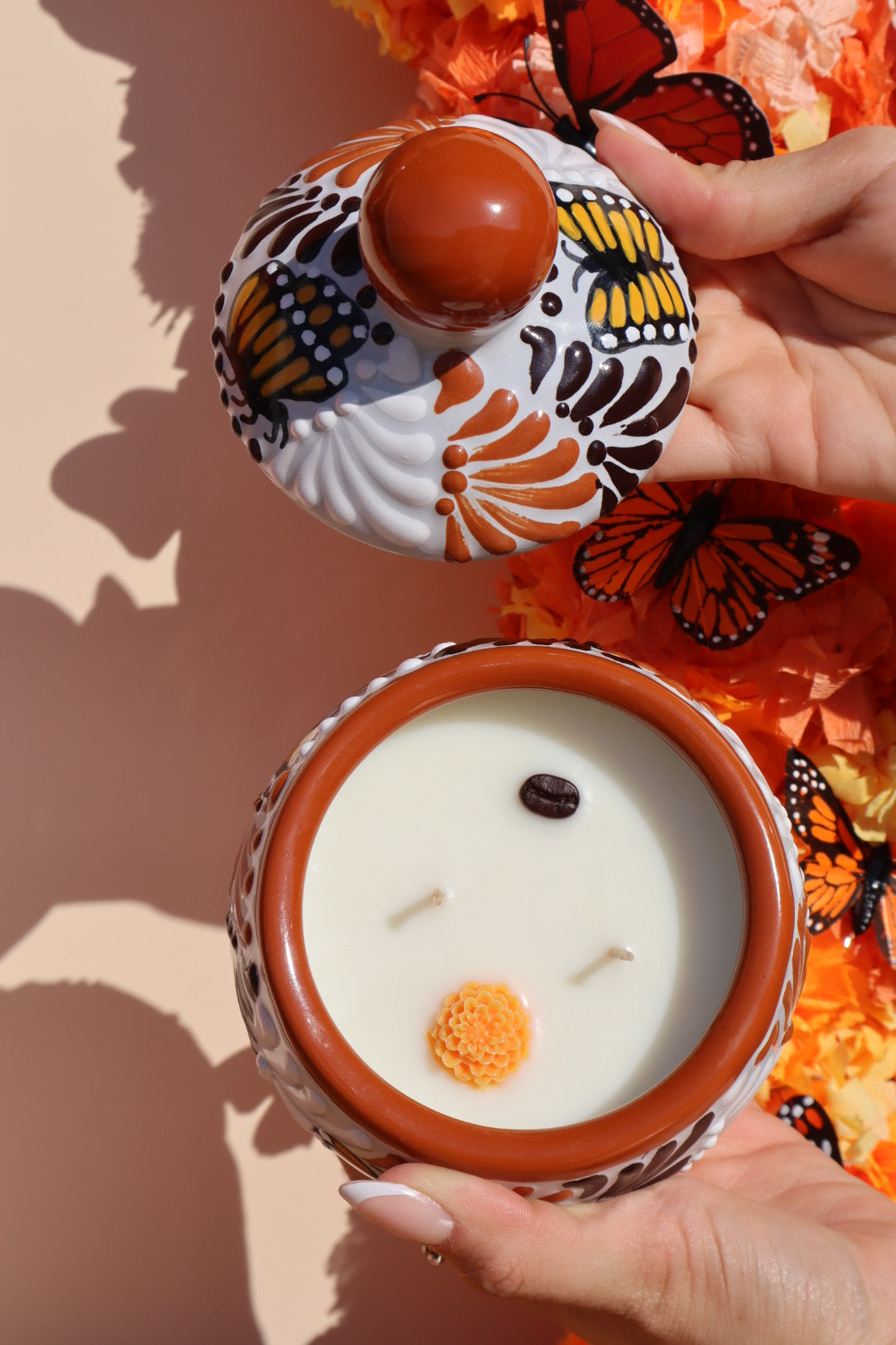 Light up your space with a "little piece of Puebla" with our exquisite Pedacito de Puebla Candle. Handcrafted in Puebla, Mexico, this candle combines the celebrated artistry of Talavera with the gentle glow of a natural soy wax candle, making it a truly special addition to any home.
