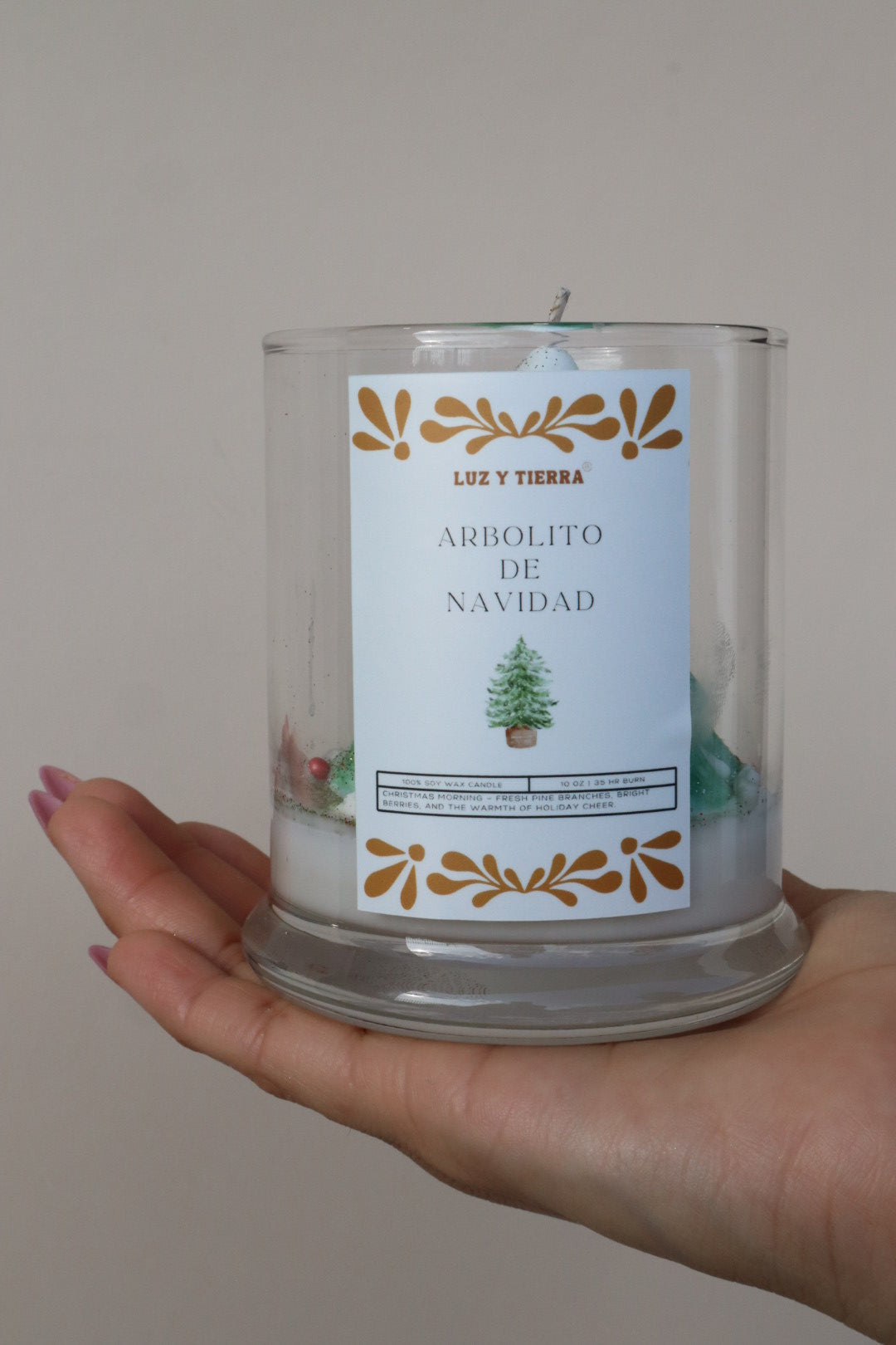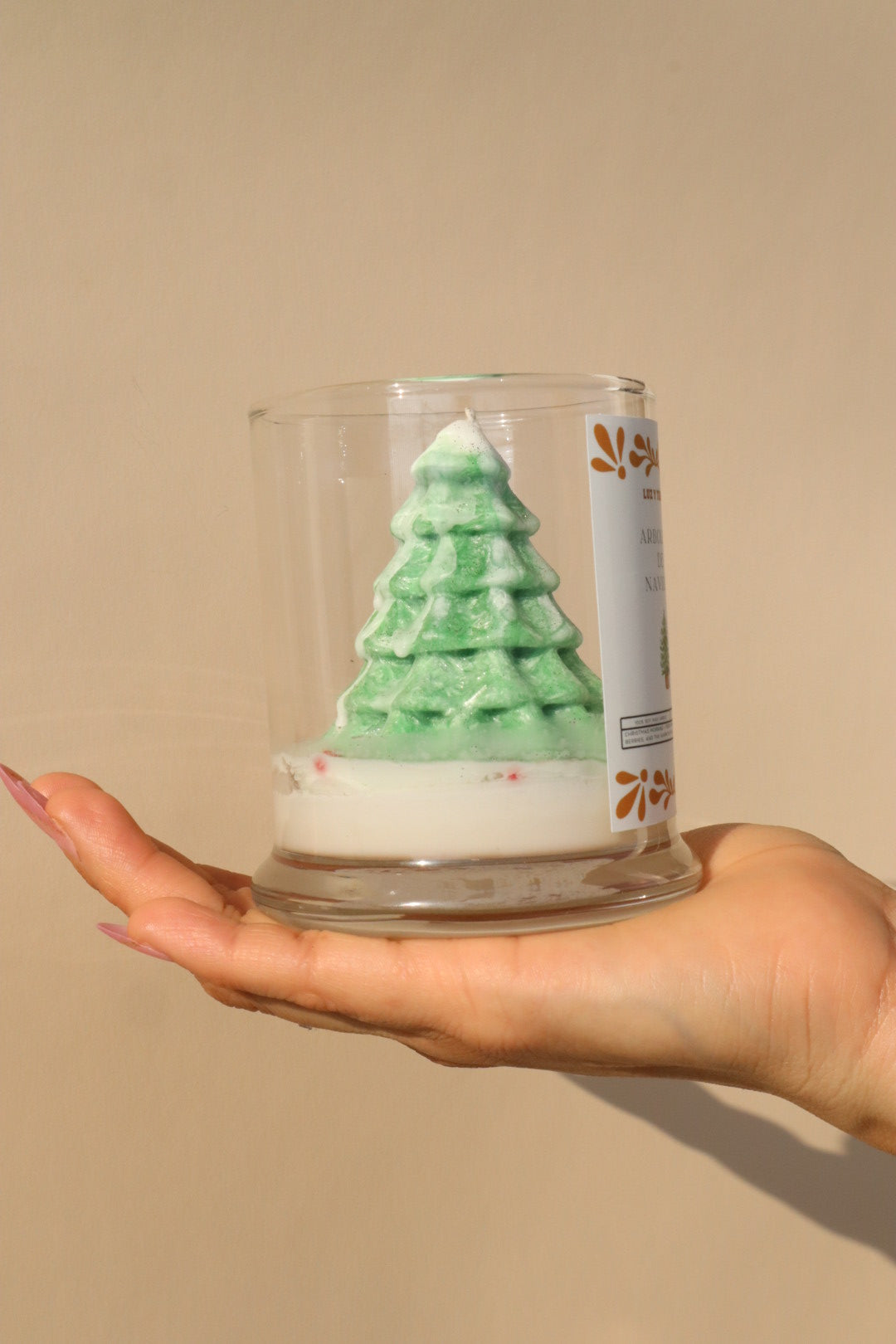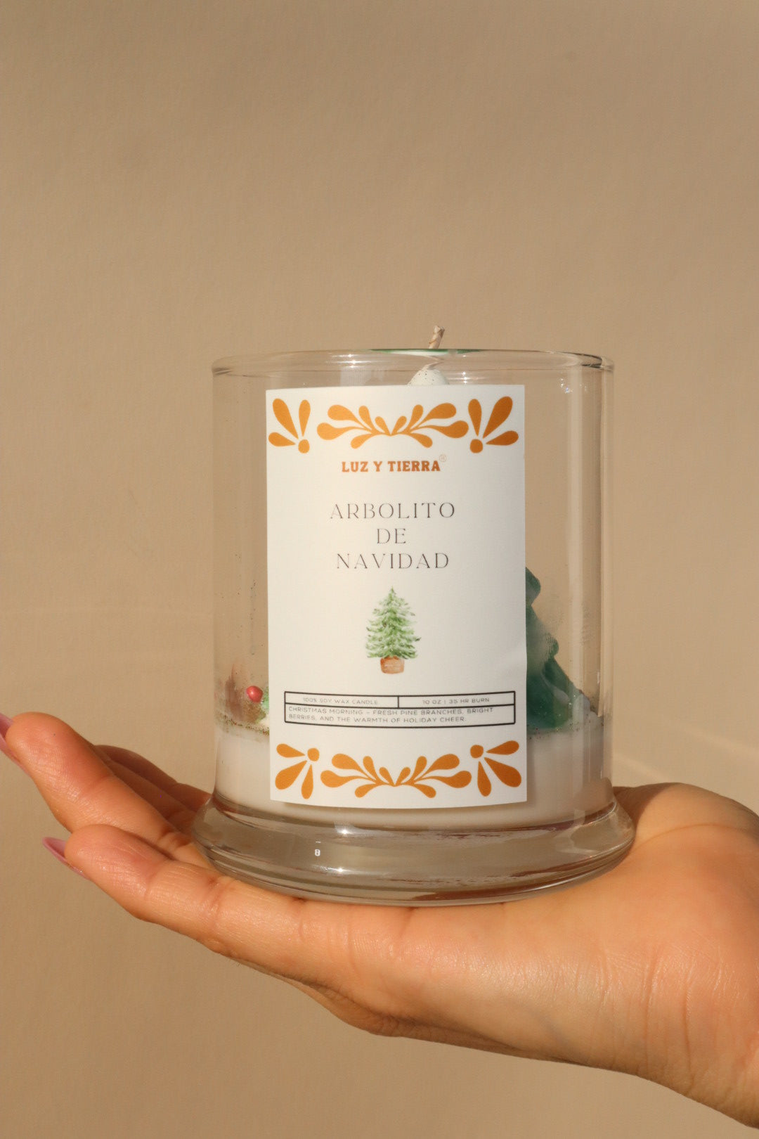 Bring the invigorating scent of a fresh-cut tree indoors with our Arbolito de Navidad Candle. This piece is a beautiful centerpiece, featuring a stunning three-dimensional Christmas Tree wax melt nestled in the soy wax and detailed with festive decorative beads. This unique presentation captures the crisp, joyful atmosphere of Christmas morning.