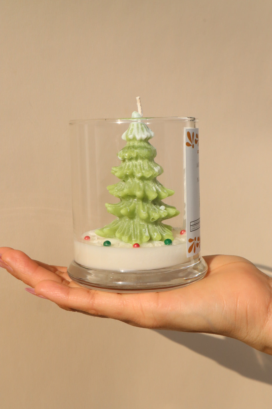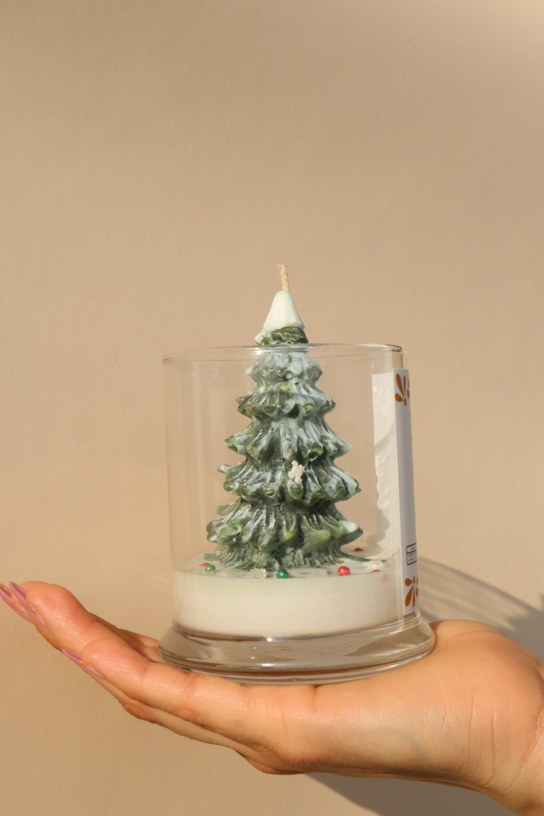 Light this candle to celebrate the season with both a captivating fragrance and a dazzling visual display. Please note that the shade and look of the wax Christmas tree may vary slightly, celebrating the beauty of the handmade process!