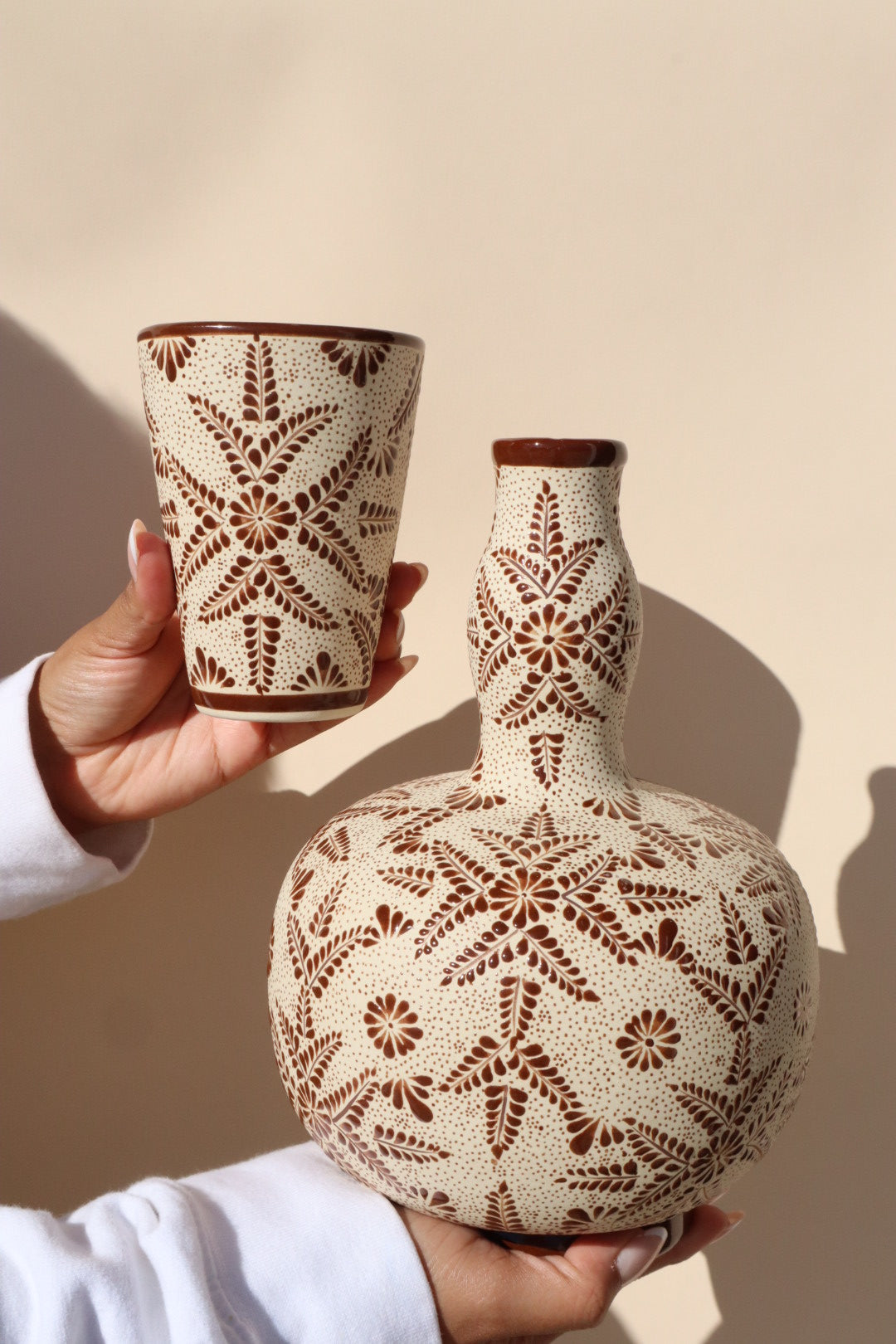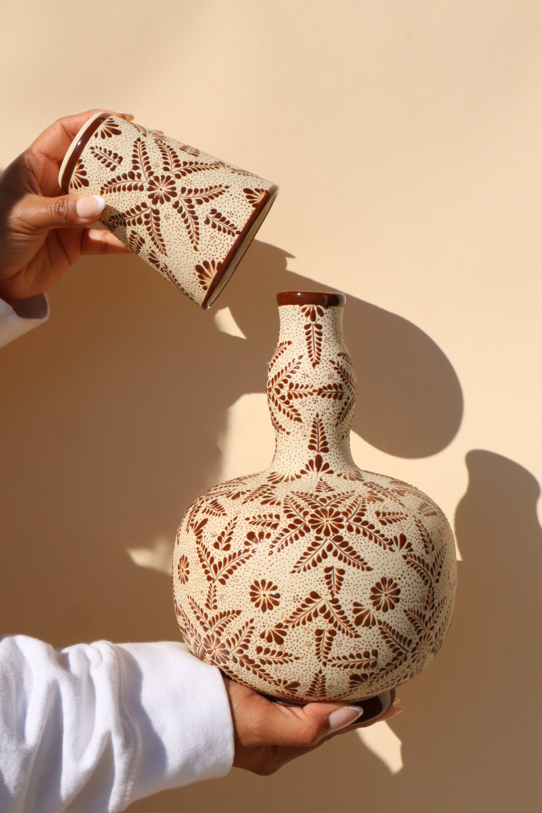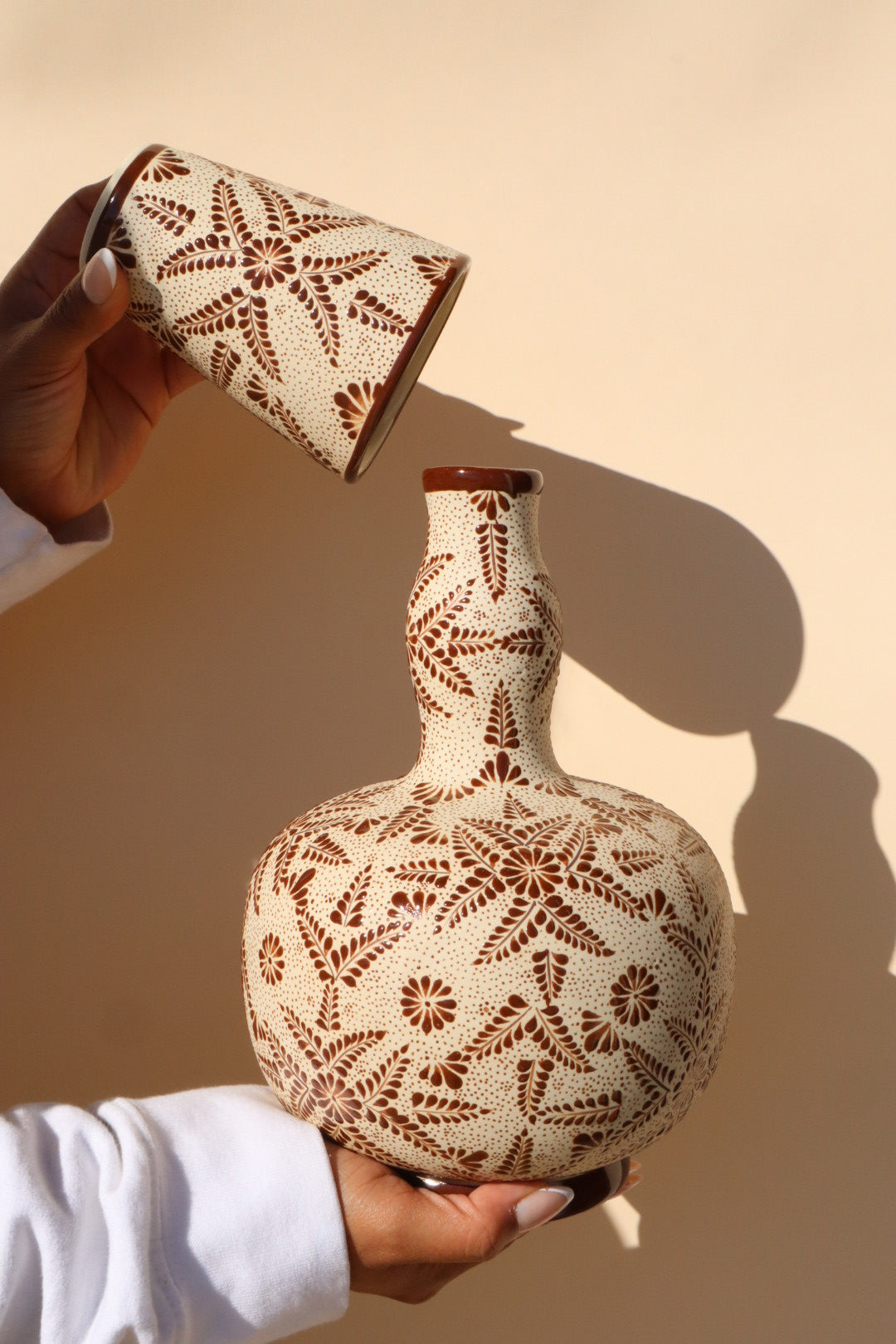 🤎 Modern Artisan Cántaro with Multi-Use Cup - Hand-Painted Ceramic