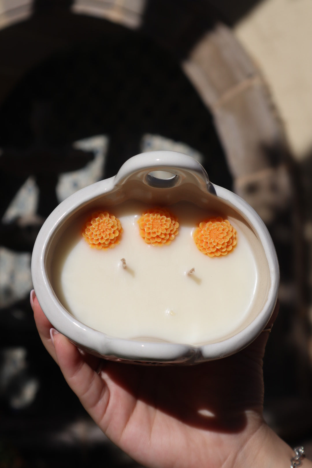 Step into a world of enchanting memories with our Canastita Recuerdame candle. This exquisite ceramic basket, handcrafted with intricate detail, is more than just a candle holder – it's a miniature work of art from Mexico. Adorned with delicate butterflies and swirling patterns in warm, inviting tones, it evokes the joy and beauty of cherished moments. Light this candle and let its gentle glow and comforting fragrance fill your space, reminding you of the beauty that surrounds us. Once the candle has burned away, this charming "little basket" can be treasured as a decorative accent, a unique planter, or a sweet keepsake holder.