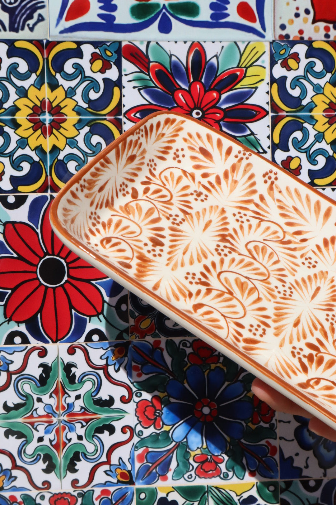 A handmade ceramic tray. Hand-crafted in Dolores Hidalgo, Guanajuato, Mexico.