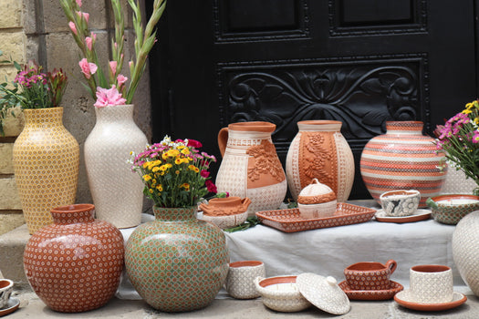 La Colección Michoacán es 100% hecha a mano en Michoacán en colaboración con Nicte-Ha Alfereria. Vertido a mano en Tejas.