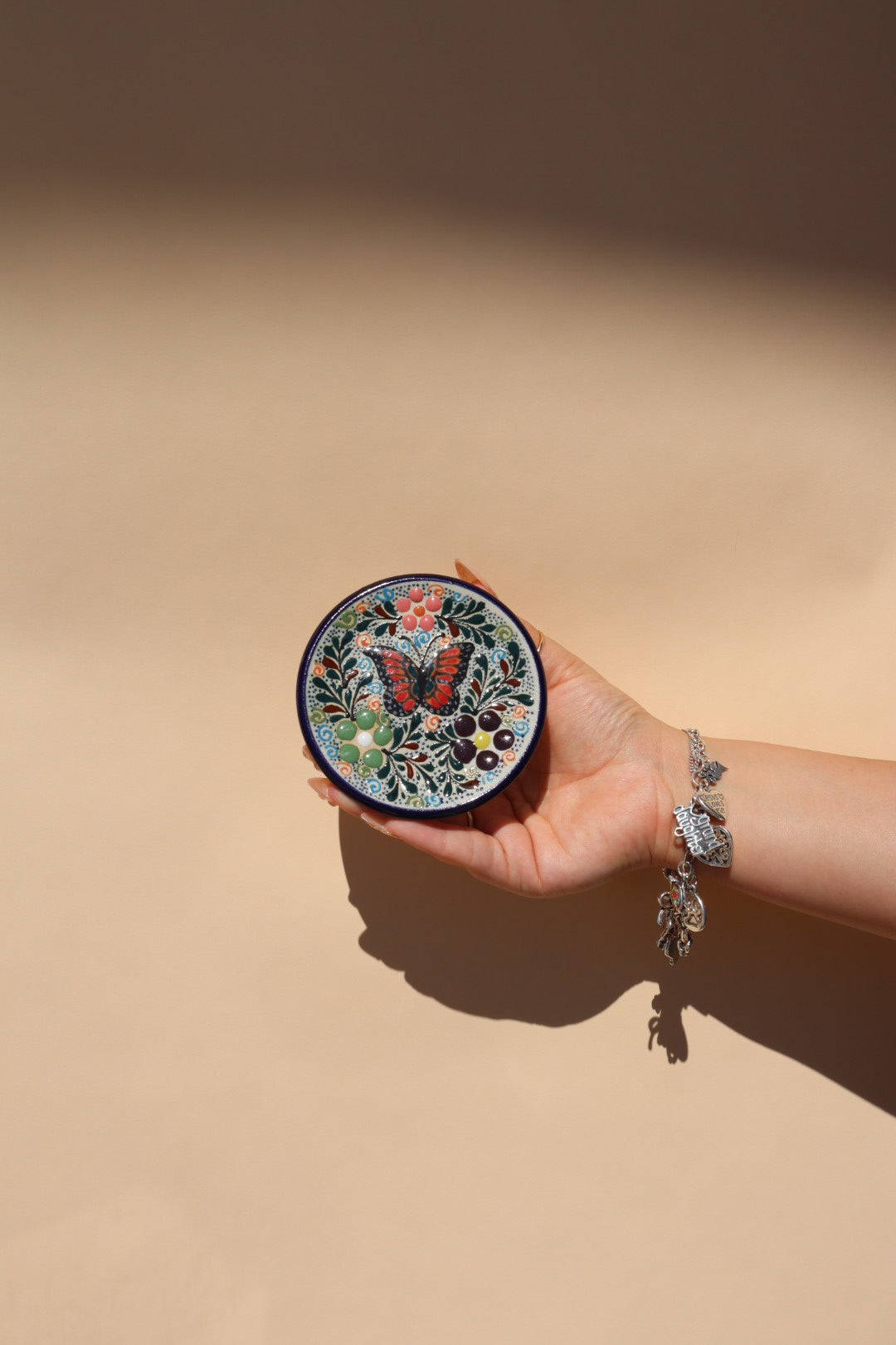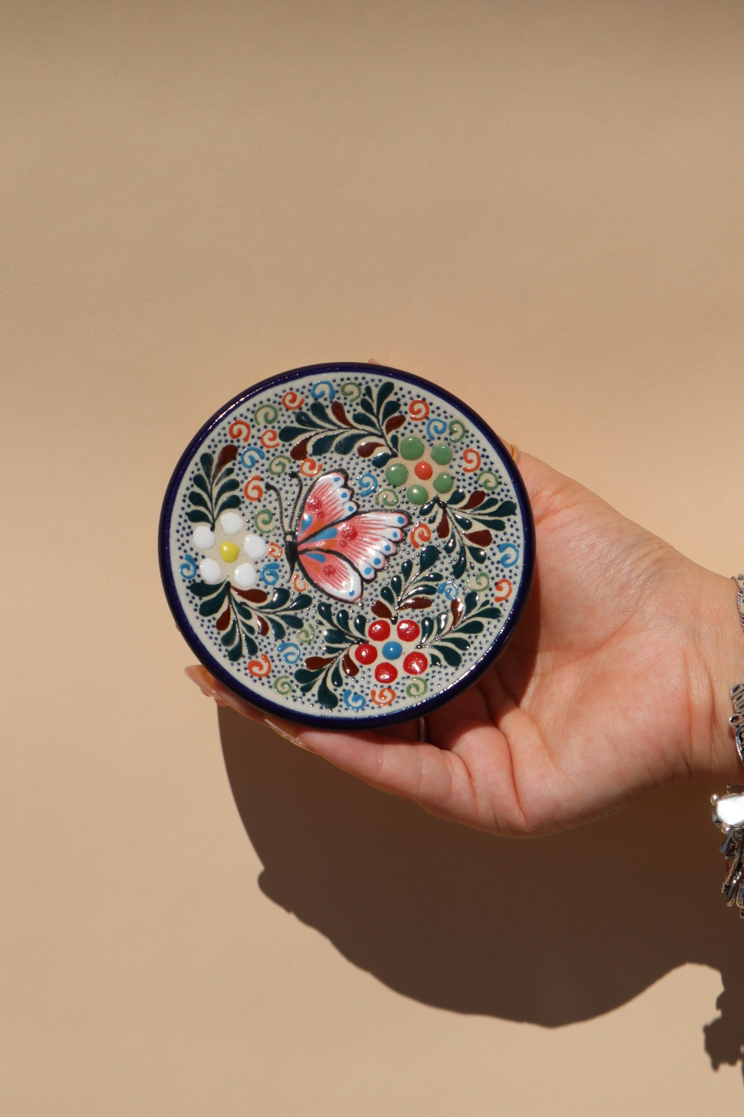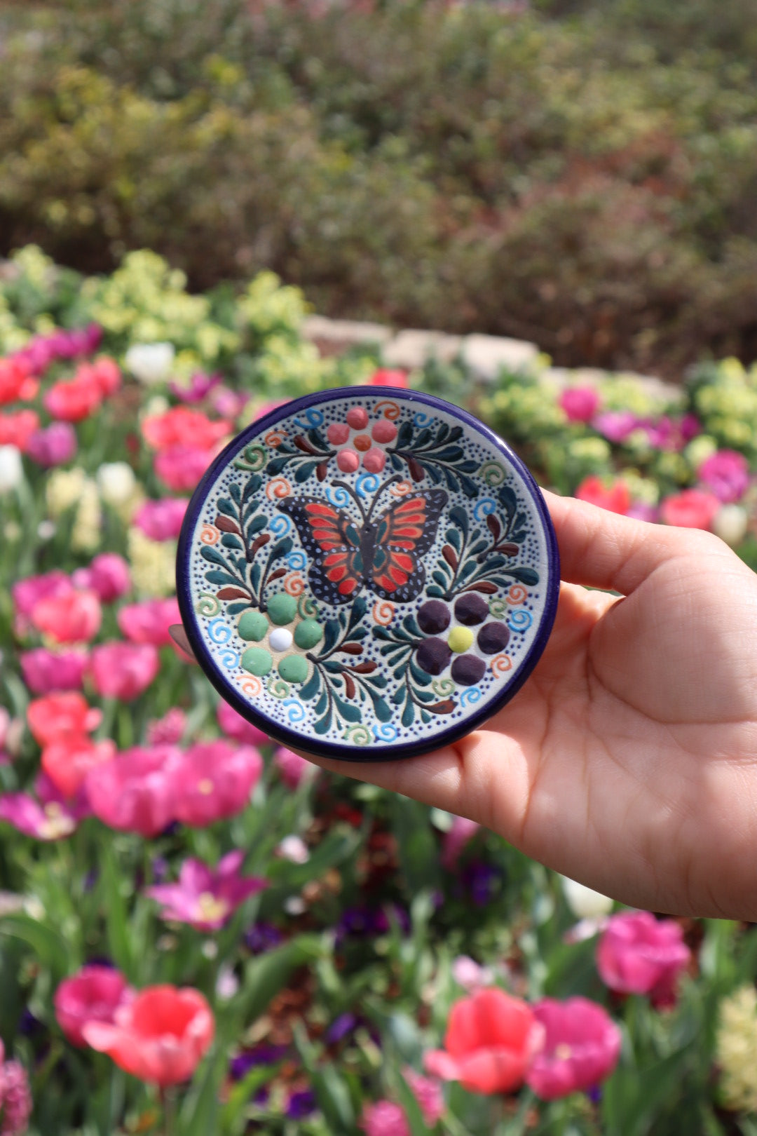 A Note on Artisanal Uniqueness: Every piece in this collection is individually handcrafted and hand-painted by artisans. Because each item is a one-of-a-kind creation, the specific colors of the butterflies and floral details will vary from piece to piece. While we strive for consistency within the collection's theme, we cannot guarantee that the item you receive will be an exact match to the one pictured. This variation is a celebration of authentic craftsmanship, ensuring your piece is truly unique to your home.
