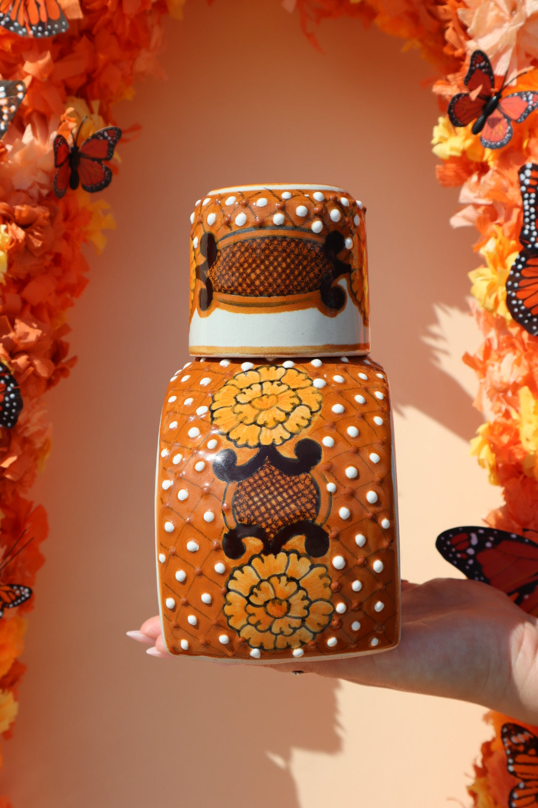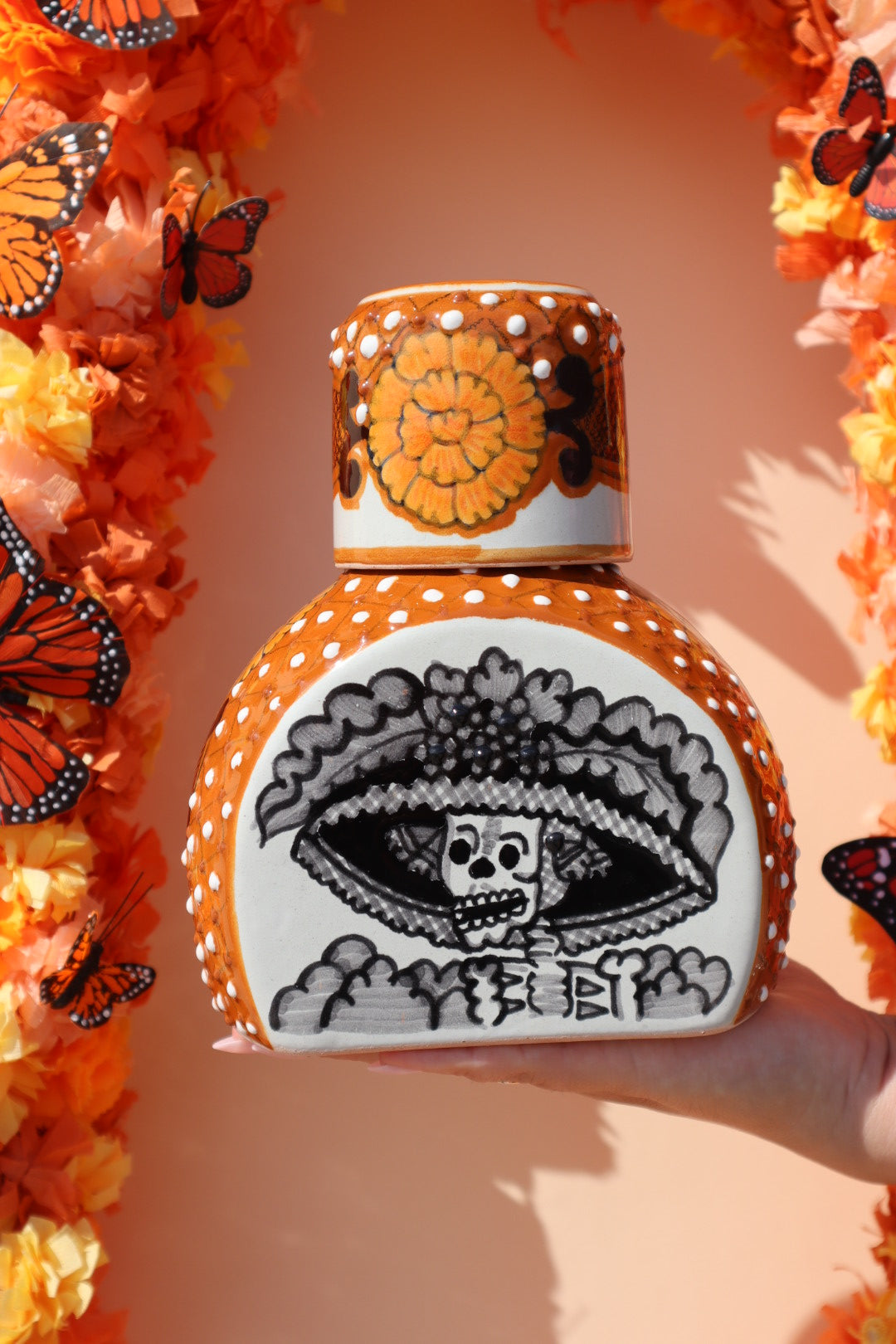 Introducing a truly exceptional addition to your home: our exclusive, handcrafted Puebla Tequilero Decanter. This exquisite piece, a testament to the rich heritage of Mexican artistry, is meticulously crafted from high-quality ceramic in collaboration with Talavera Salazar in Puebla, Mexico.