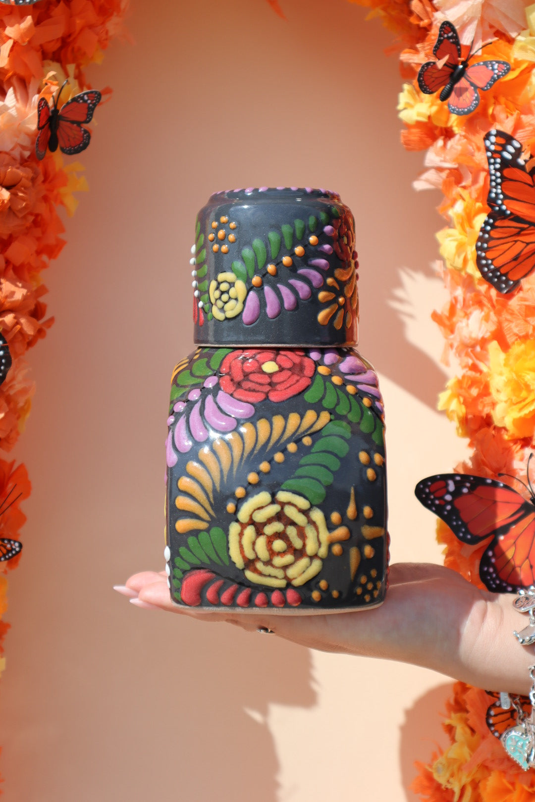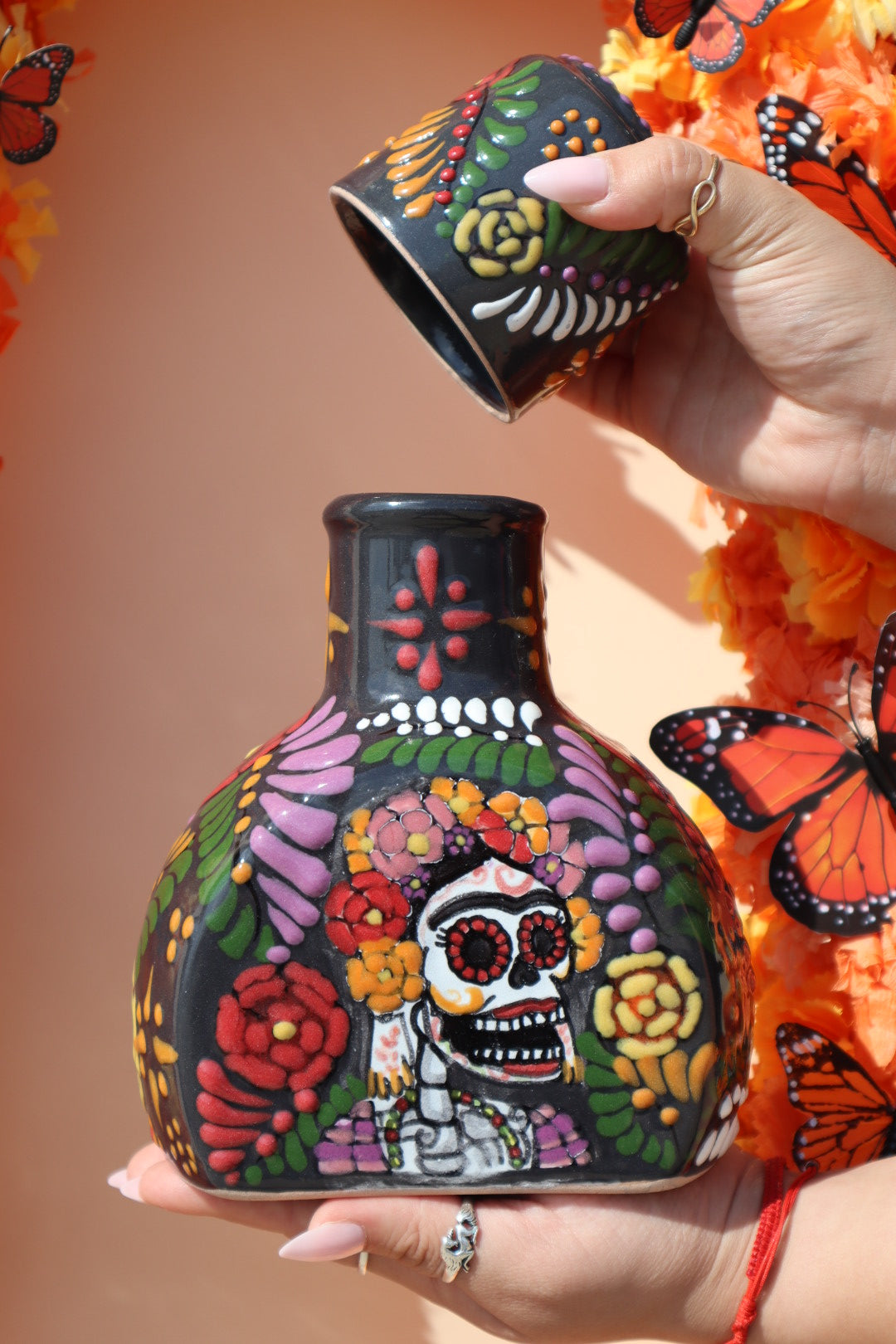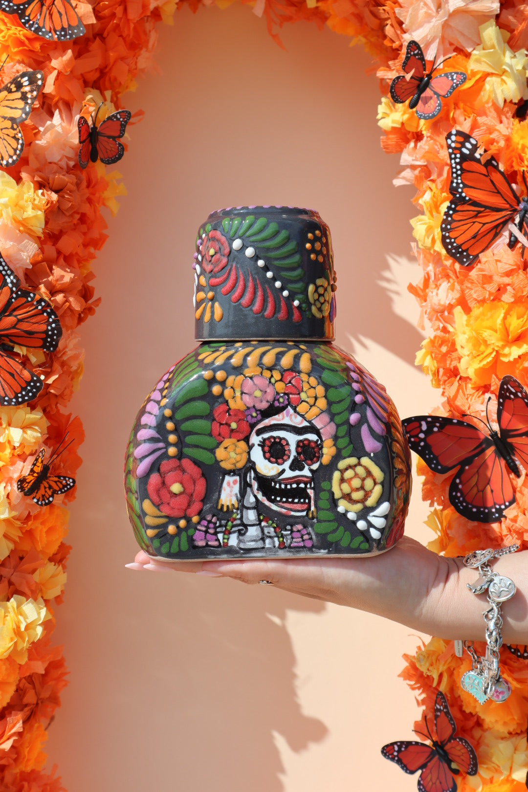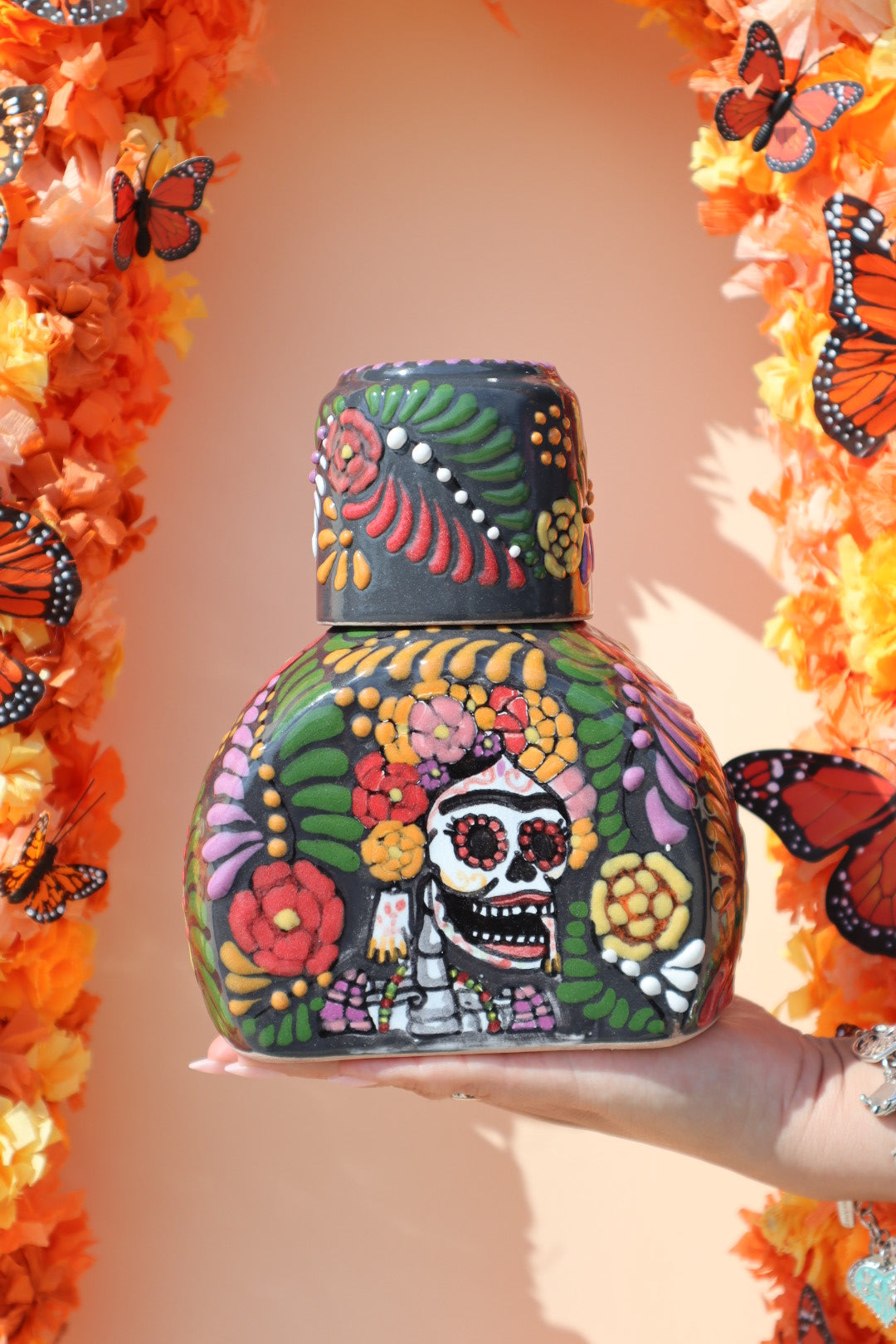 Introducing a truly exceptional addition to your home: our exclusive, handcrafted Puebla Tequilero Decanter. This exquisite piece, a testament to the rich heritage of Mexican artistry, is meticulously crafted from high-quality ceramic in collaboration with Talavera Salazar in Puebla, Mexico.