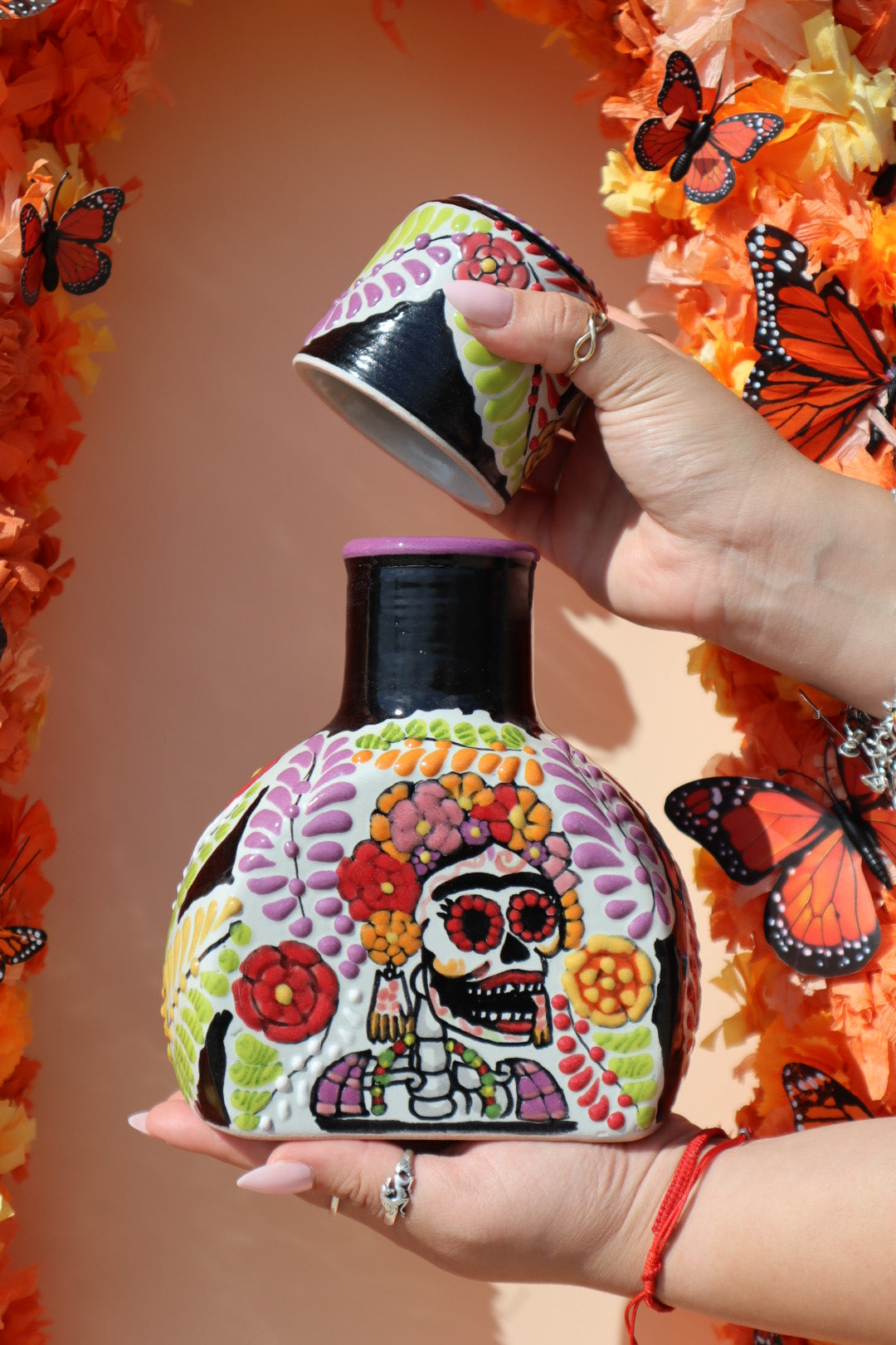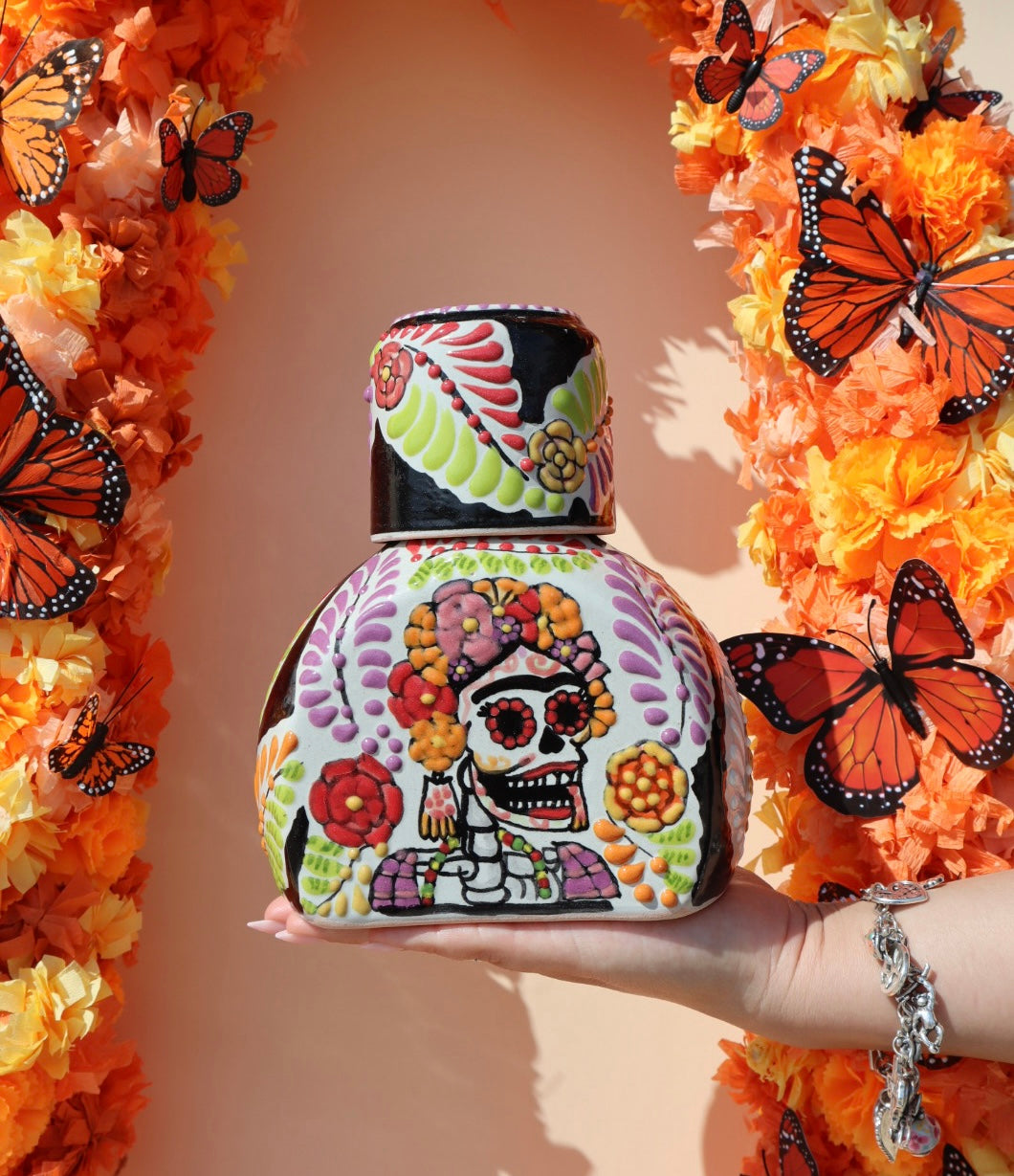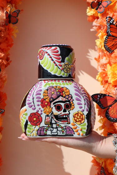 Introducing a truly exceptional addition to your home: our exclusive, handcrafted Puebla Tequilero Decanter. This exquisite piece, a testament to the rich heritage of Mexican artistry, is meticulously crafted from high-quality ceramic in collaboration with Talavera Salazar in Puebla, Mexico.