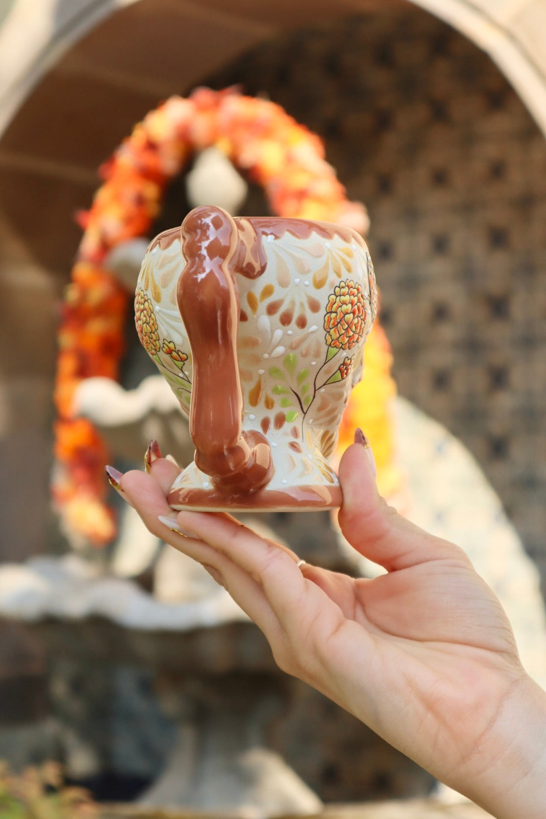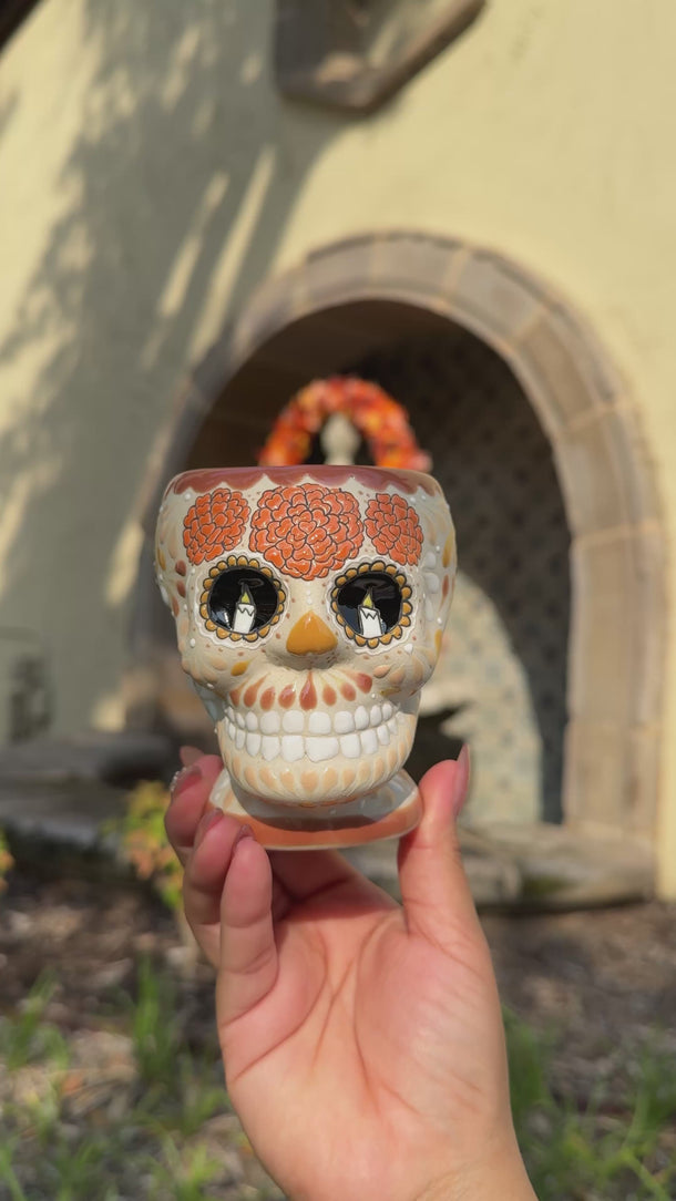 Recuérdame (Cempasúchil) is a handmade ceramic mug made in Estado de Mexico. Hand-poured in Mesquite, Texas.