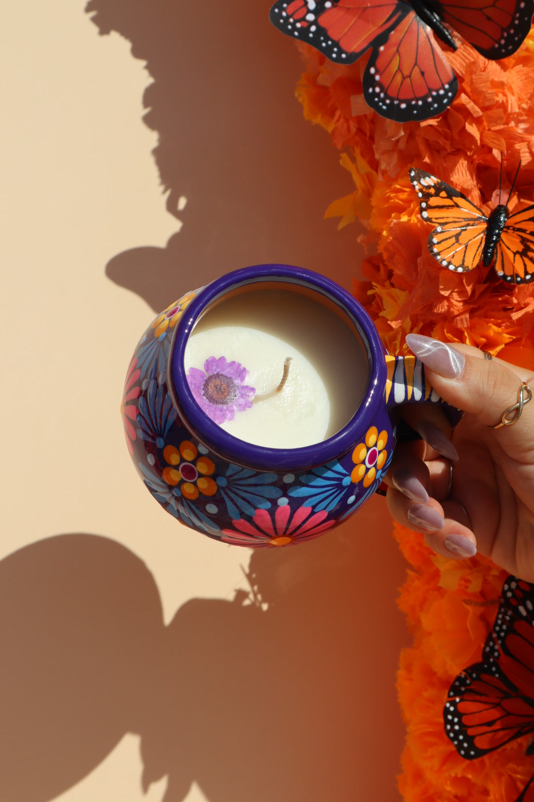 Cada taza está pintada y vertida a mano. Todos los colores y diseños de flores pueden variar. No hay dos velas iguales. Los diseños y colores pueden ser diferentes a los de la imagen.