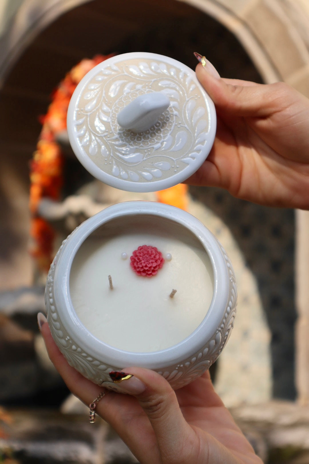 - Hand-Poured Candle: Filled with 100% high-quality soy wax, ensuring a long-lasting and fragrant burn.