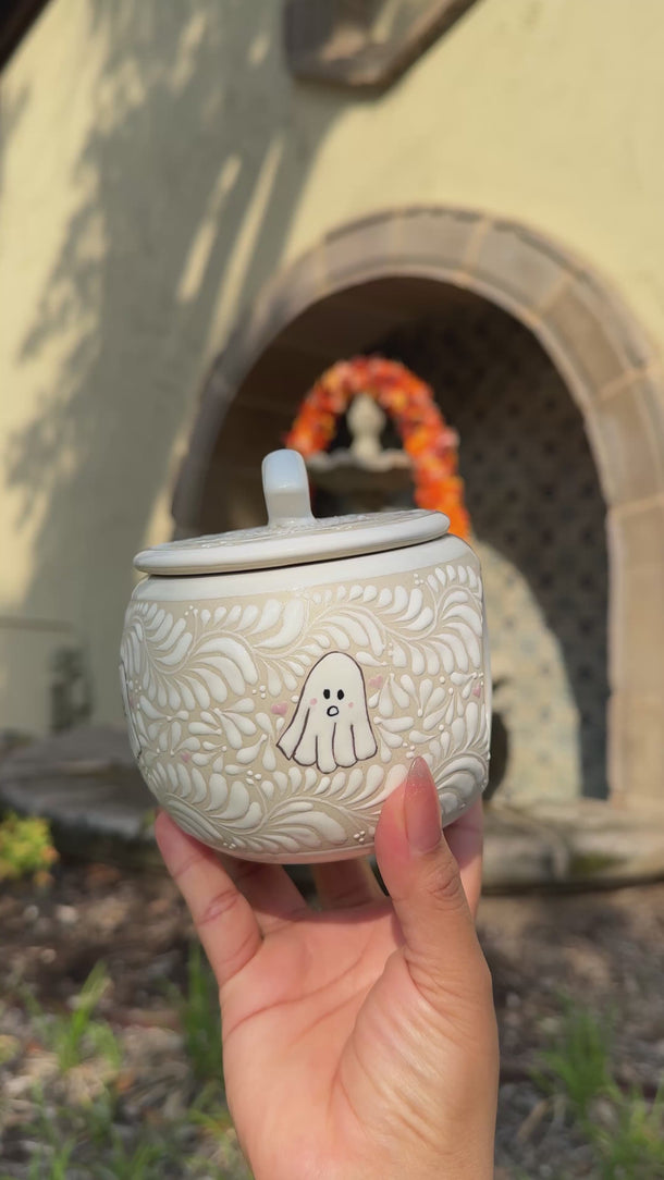 Discover Taza Fantasma Coqueta Candle, a handmade ceramic candle, crafted in the heart of Mexico. This exquisite piece combines the artistry of traditional Mexican craftsmanship with the warm glow of candlelight.