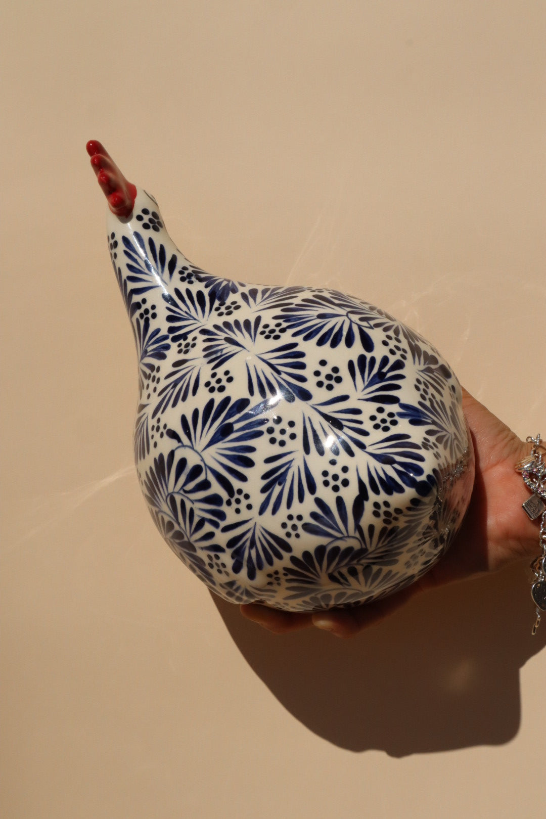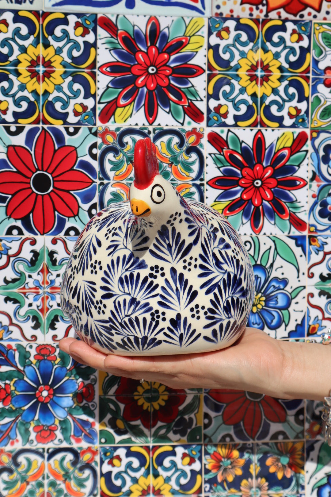 This charming, hand-painted Decorative Hen brings a delightful touch of authentic Mexican folk art to any space. Crafted by skilled artisans in Guanajuato, Mexico, this piece is a joyful statement of traditional ceramic artistry.