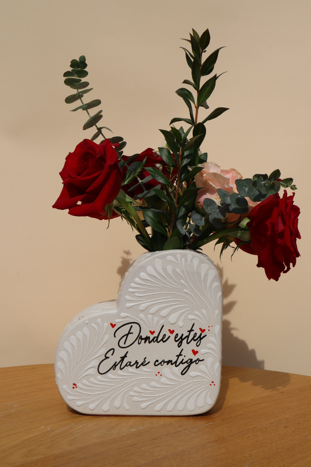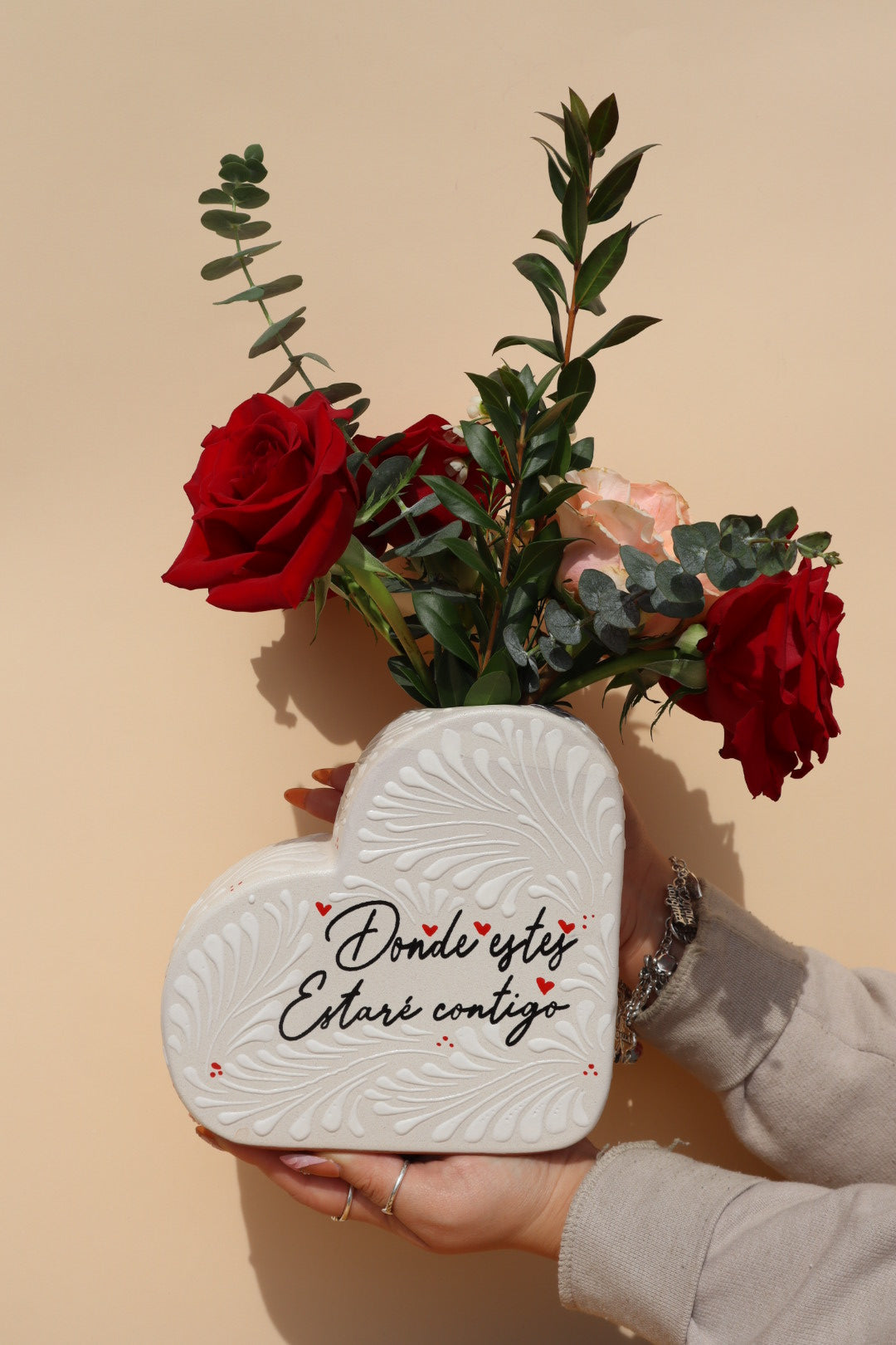 Flip the vase over to find a sentimental hidden detail: the hand-painted inscription "donde estés estaré contigo"(wherever you are, I will be with you), making this a deeply meaningful gift or keepsake.