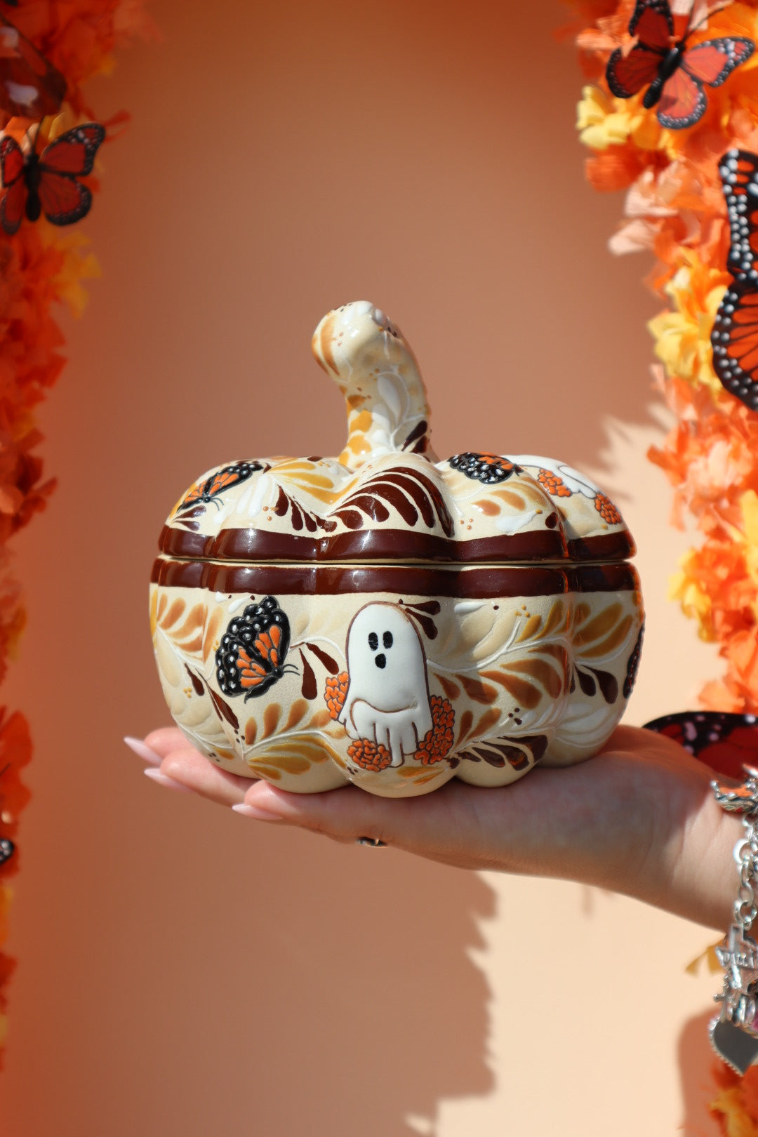 ✨ Please Note: Each pumpkin is individually handmade by artisans, so slight variations in shape, color, or surface details (including small lines or marks from the firing process) are completely natural and part of the piece’s unique character. Lids are fitted by hand and may need to be gently turned or adjusted to find their best resting position. These variations are not flaws, but a reflection of the authentic craftsmanship that makes every calabaza one-of-a-kind.