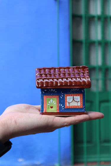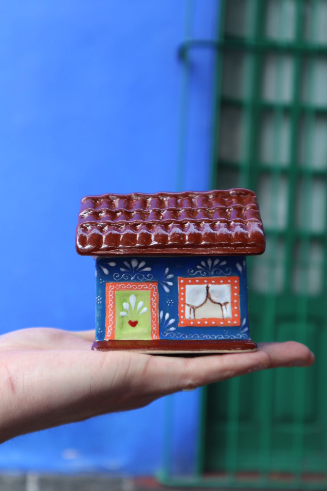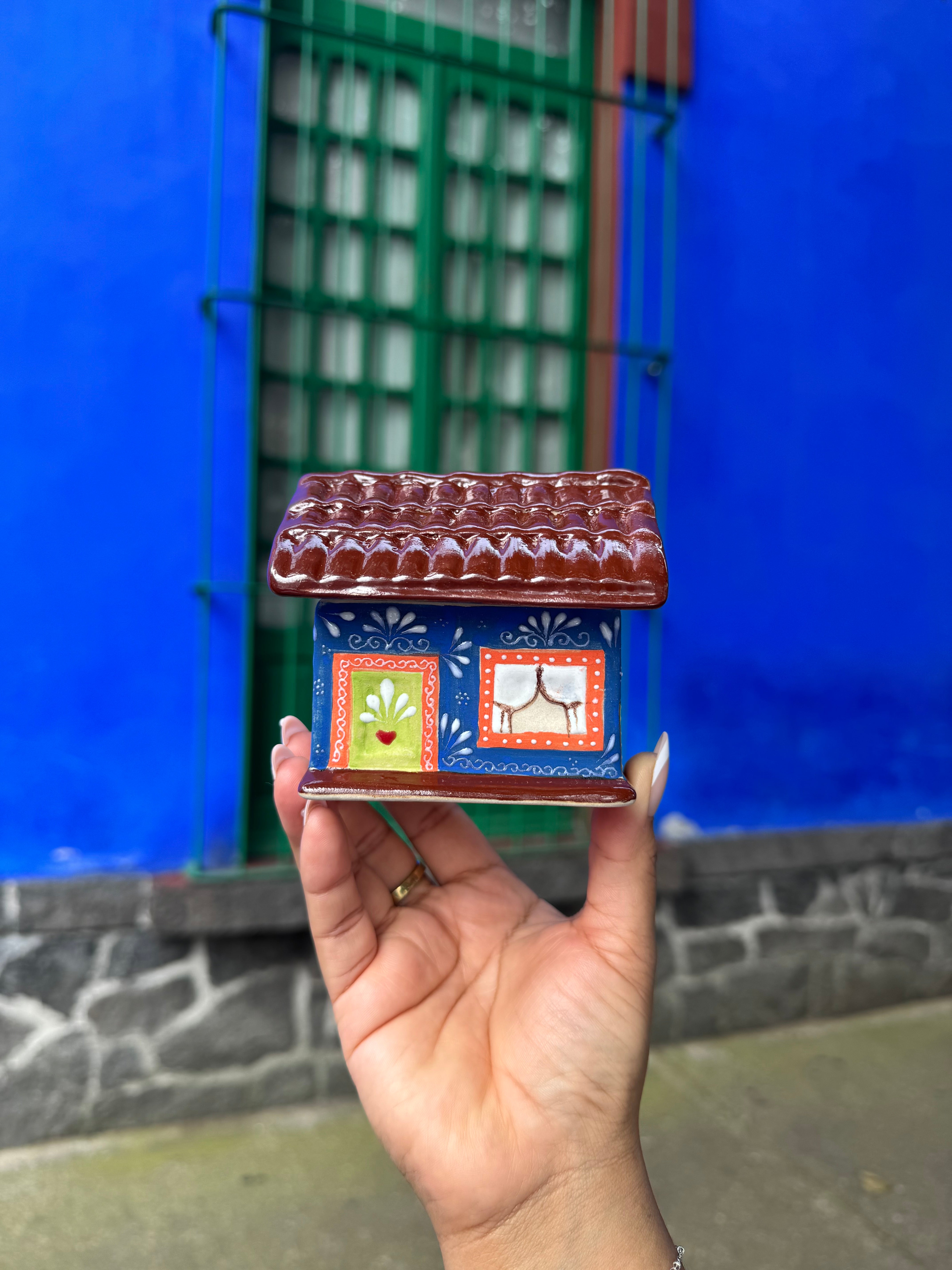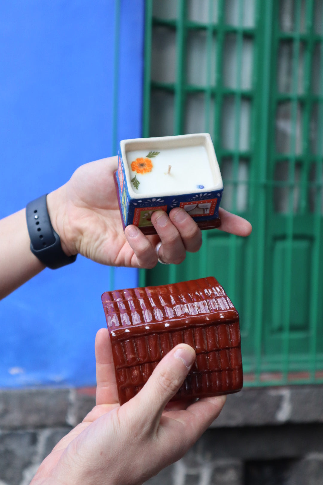 Inspired by the iconic blue walls of Casa Azul in Coyoacán, our Casita de Luz Candle is a tribute to Mexican creativity, warmth, and the universal feeling of home. Each piece is a functional work of art—handcrafted by artisans in Mexico, where the roof lifts to reveal a hand-poured candle inside.