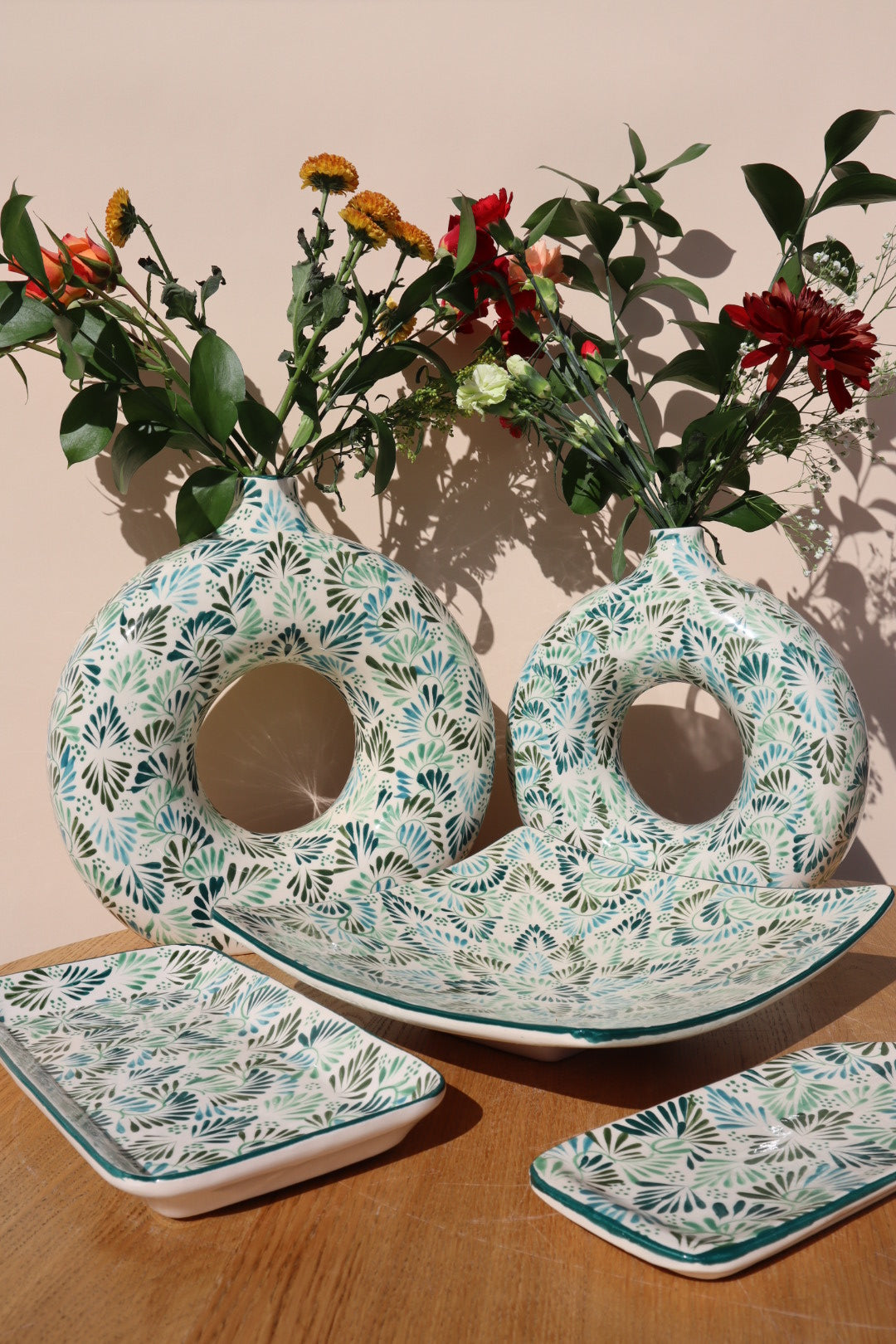 An artisanal ceramic vase for home decor. Hand-crafted in Dolores Hidalgo, Guanajuato, Mexico.