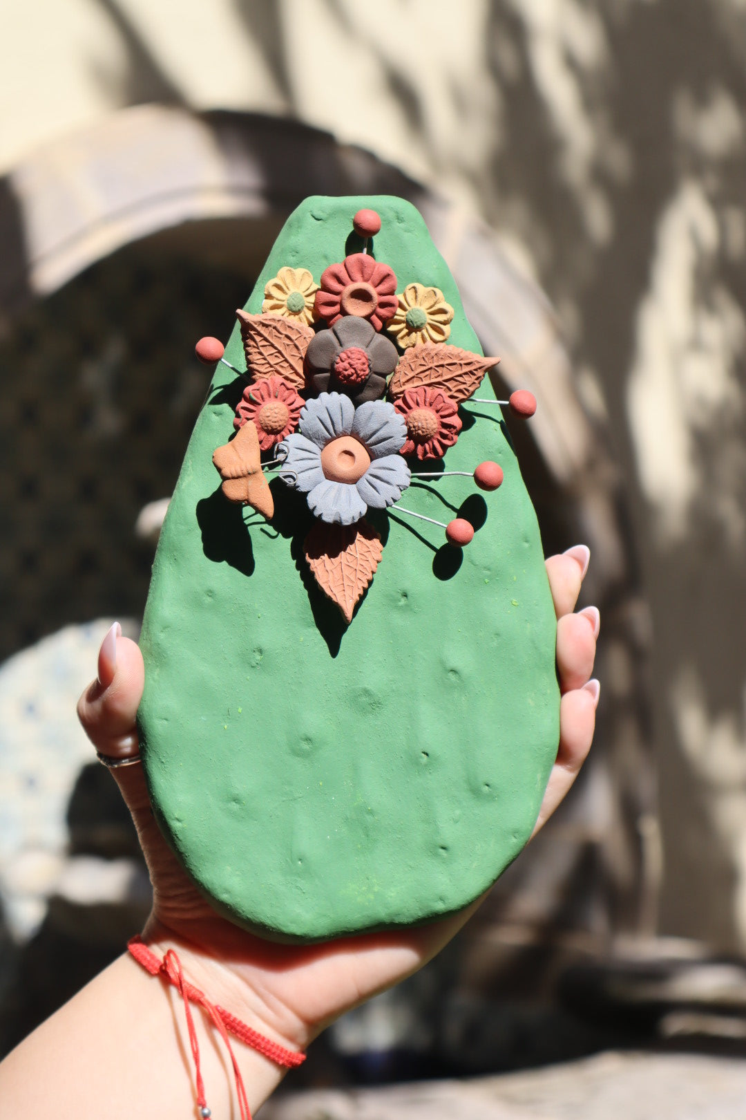 This beautiful wall hanging is a unique representation of a Nopal cactus paddle, a symbol deeply rooted in Mexican culture and the enduring spirit of the land. Each piece is meticulously handcrafted in the Estado de México, ensuring a one-of-a-kind work of art.